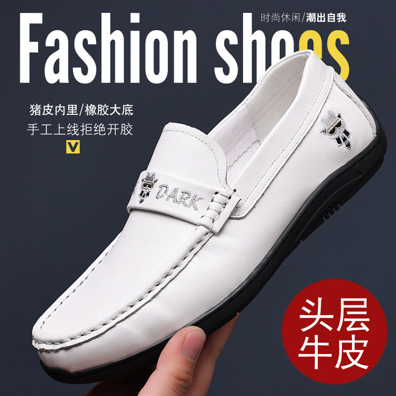 新款头层牛皮男士豆豆鞋真皮男款休闲皮鞋时尚乐福鞋欧货套脚男鞋
