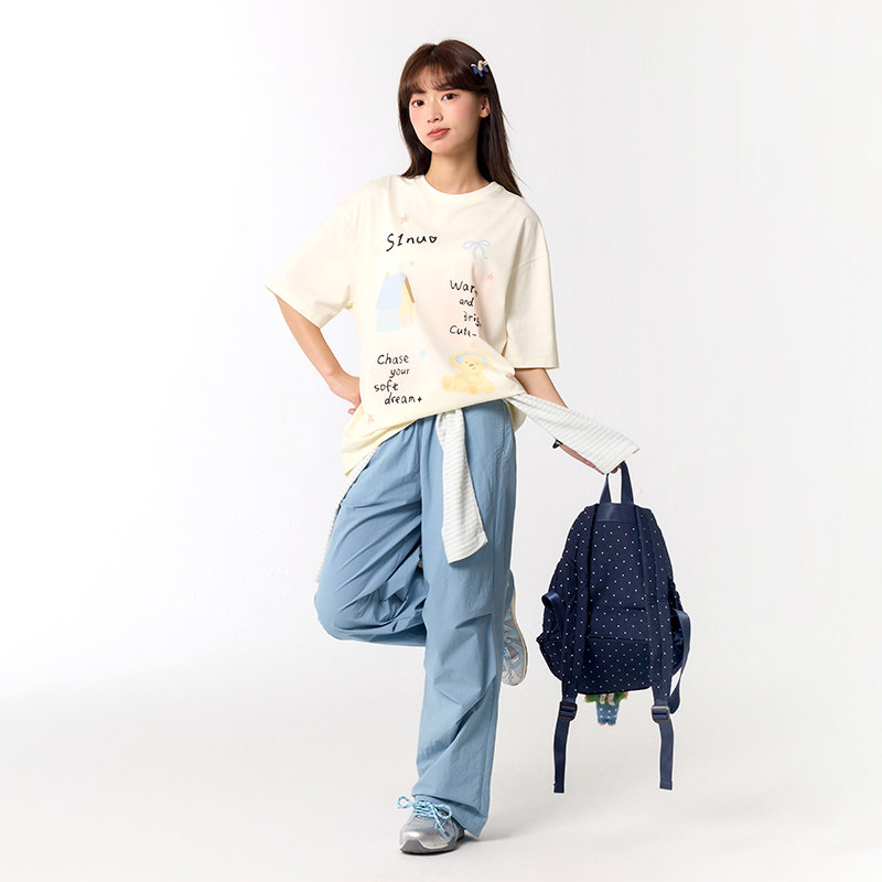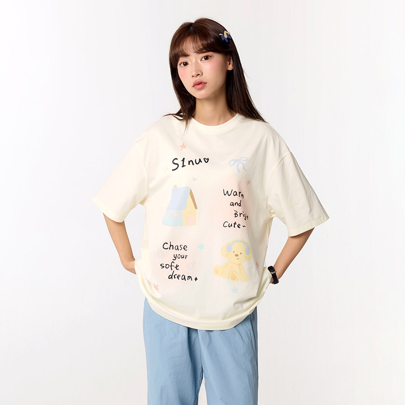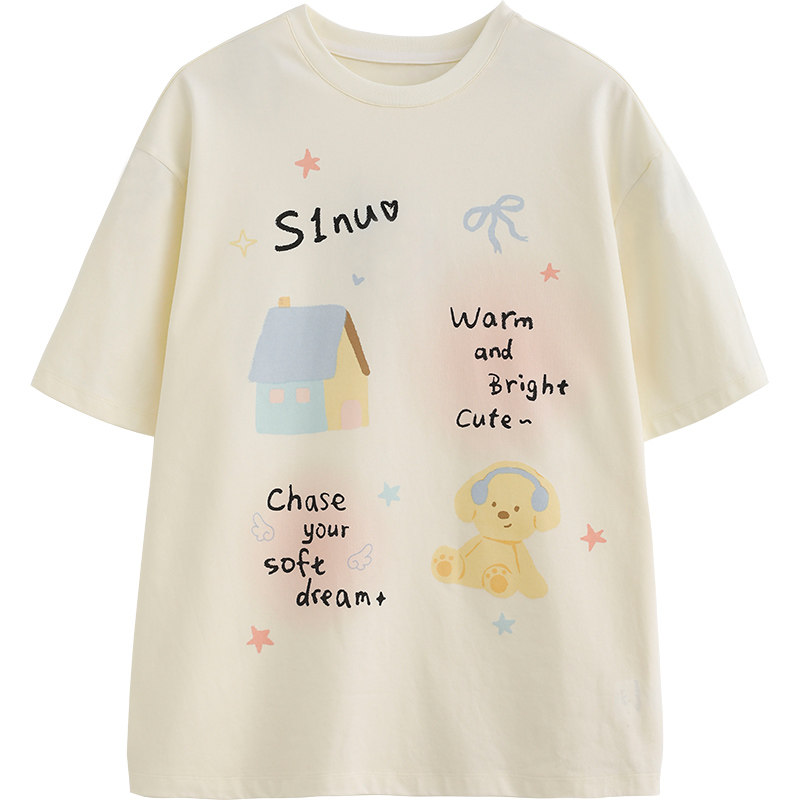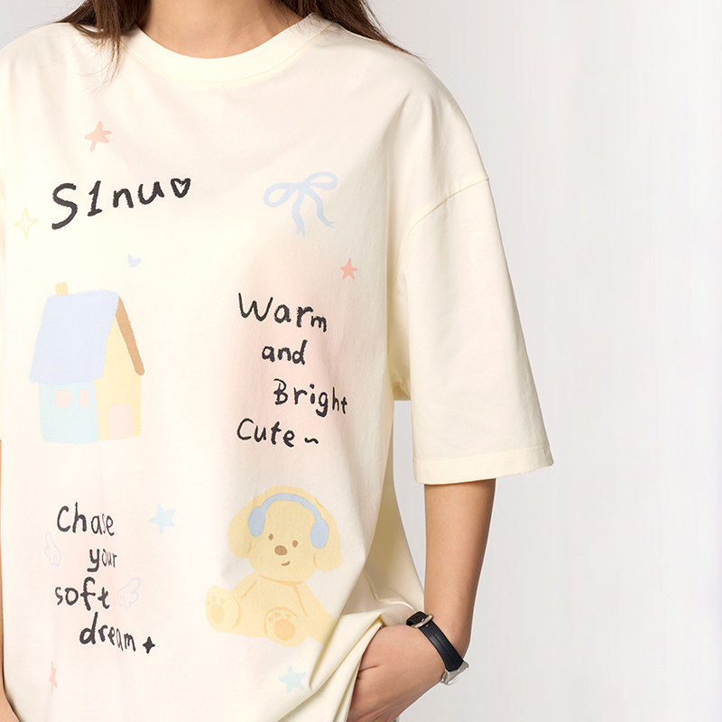 诺诺公主S1N初中生2026夏季新款印花T恤女青少年甜美宽松显瘦上衣