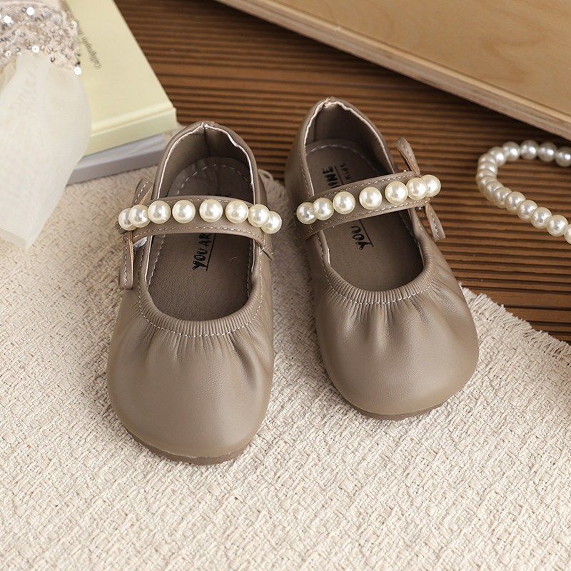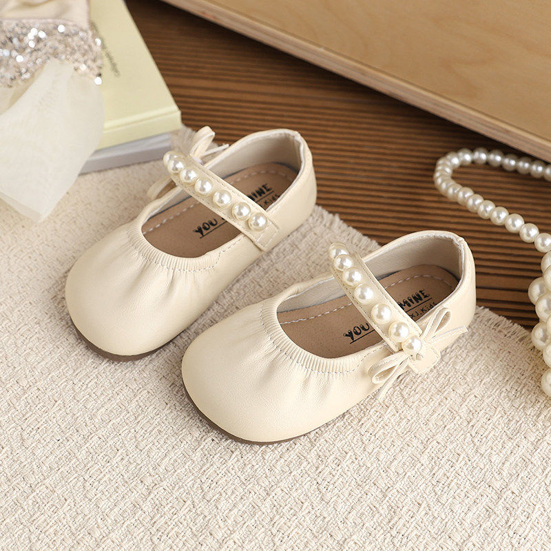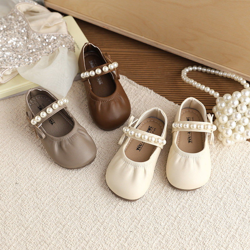 真皮儿童珍珠公主鞋2026春秋新款软底百搭小皮鞋女童宝宝单鞋时尚