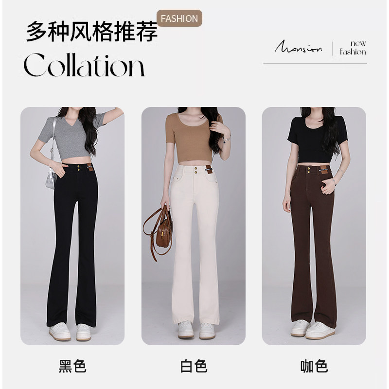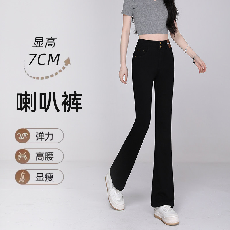 高腰微喇牛仔裤女款爆款2026新款春秋修身显瘦小个子喇叭黑色裤子