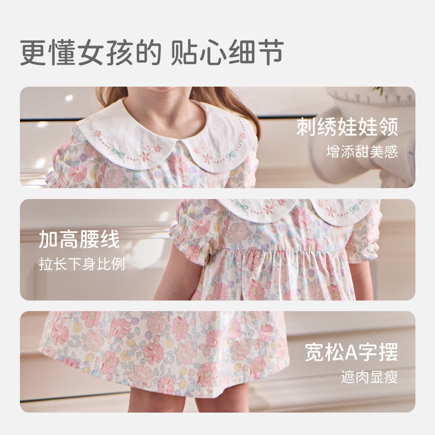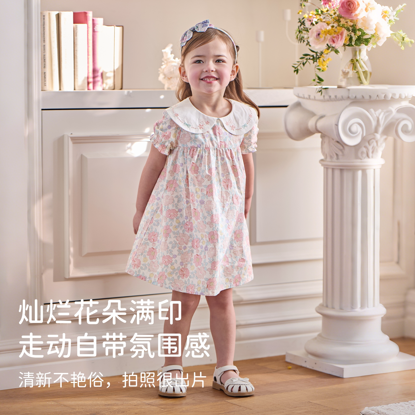 戴维贝拉女童纯棉连衣裙2026夏装新款儿童印花裙子宝宝A类碎花裙