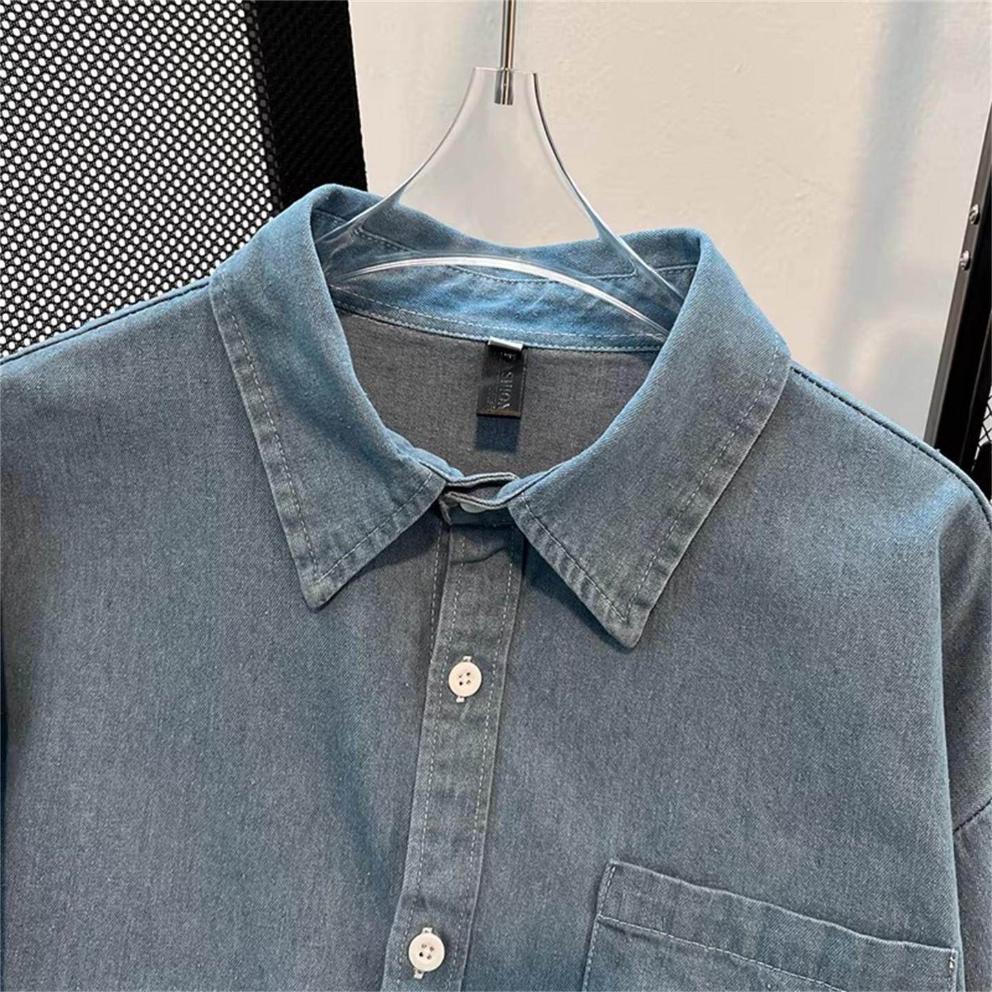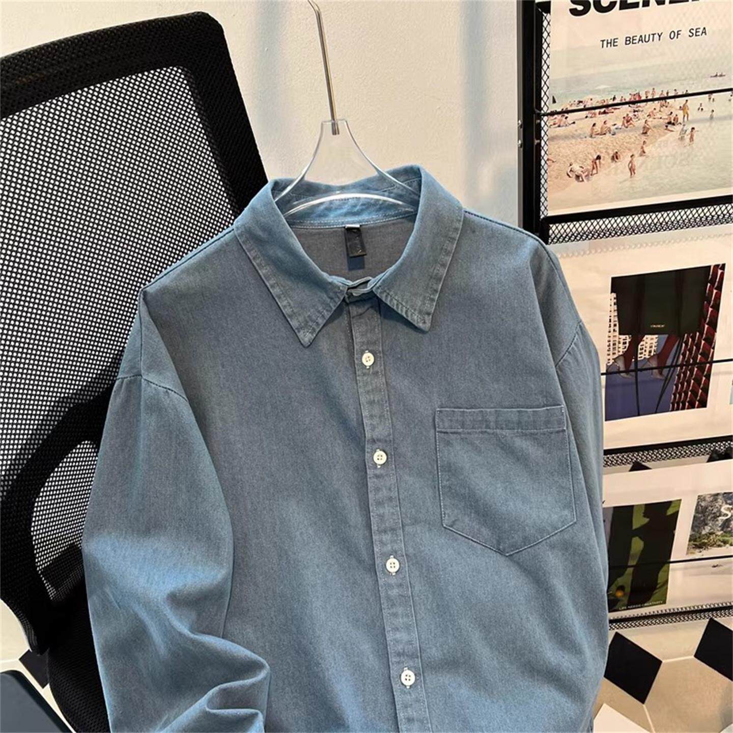 高端深蓝色牛仔衬衫男士长袖2026年新款春季港风宽松衬衣外套男款