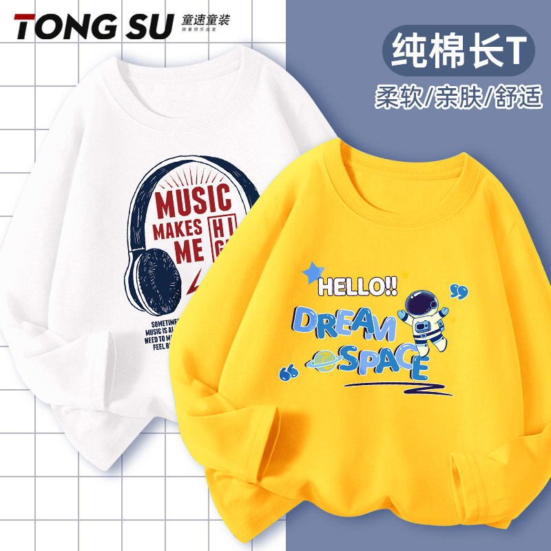 男童长袖t恤春秋款2026新款纯棉痞帅风衣服男孩体恤儿童春季上衣