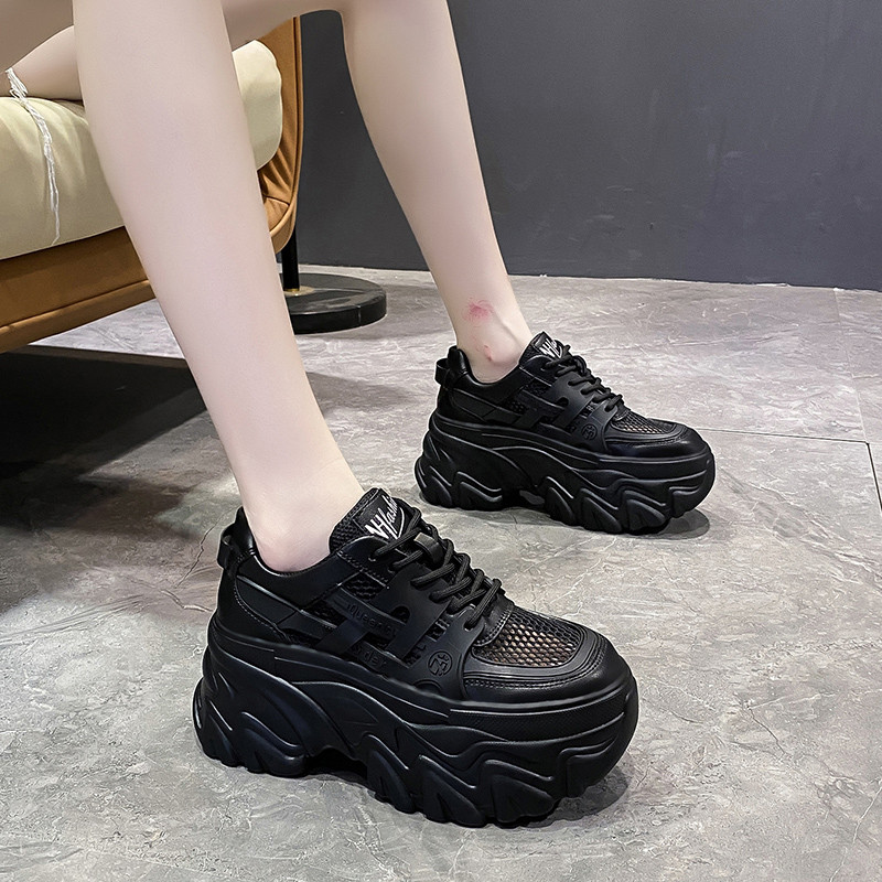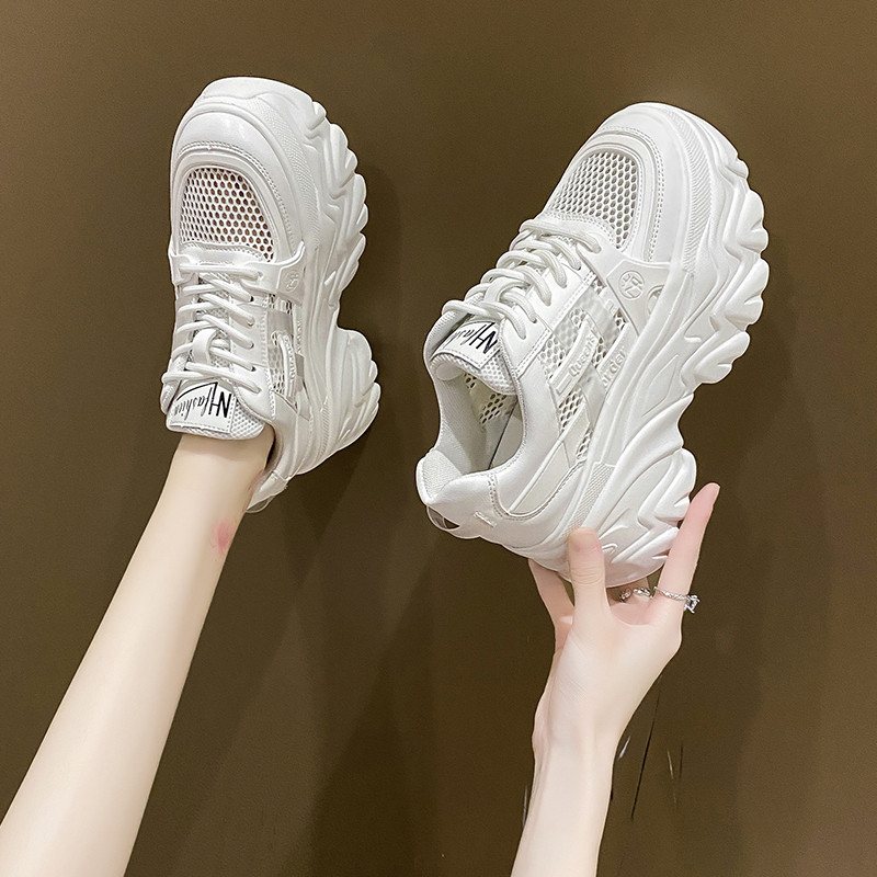 白色老爹鞋女款夏季2026新款网红爆款网鞋透气厚底增高松糕运动鞋