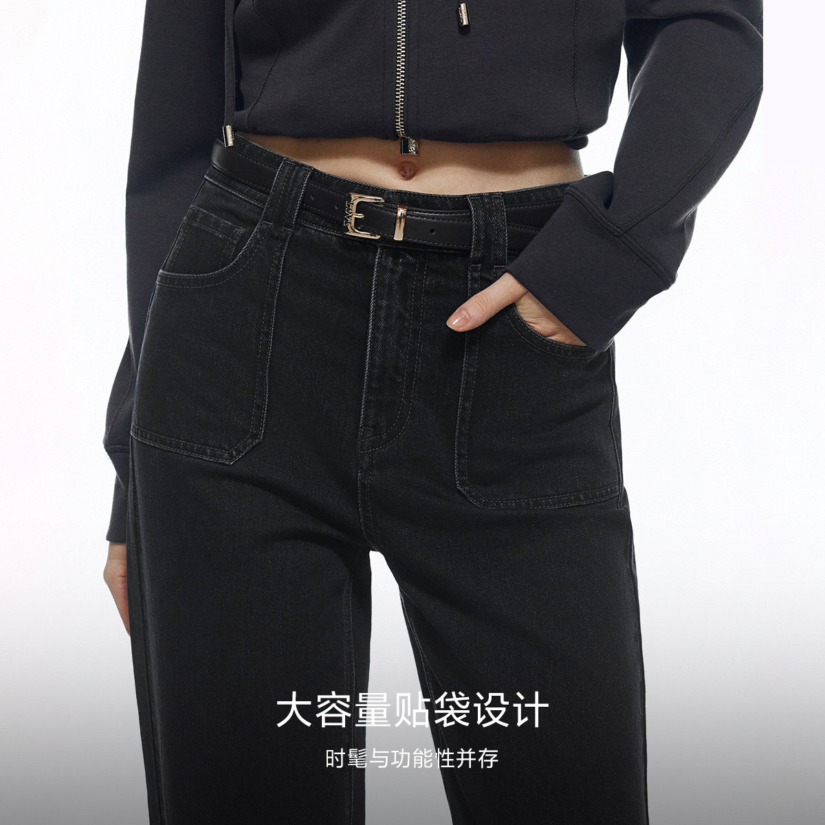 ONLY2026春季新款松弛风实用贴袋直筒裤小个子友好九分牛仔裤女