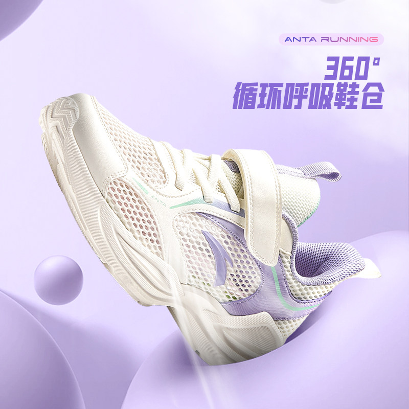 安踏儿童运动鞋女童鞋子2026新款春夏网面女童跑步鞋小白鞋