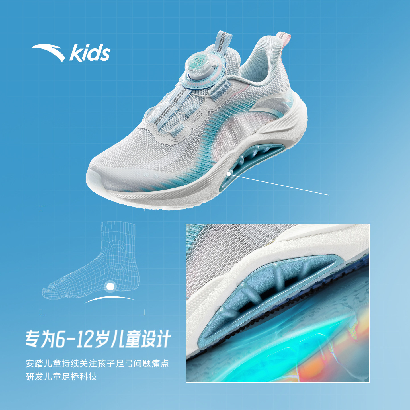 足弓安踏女童鞋儿童跑鞋夏季新款透气网面跑步鞋学生运动鞋大童春