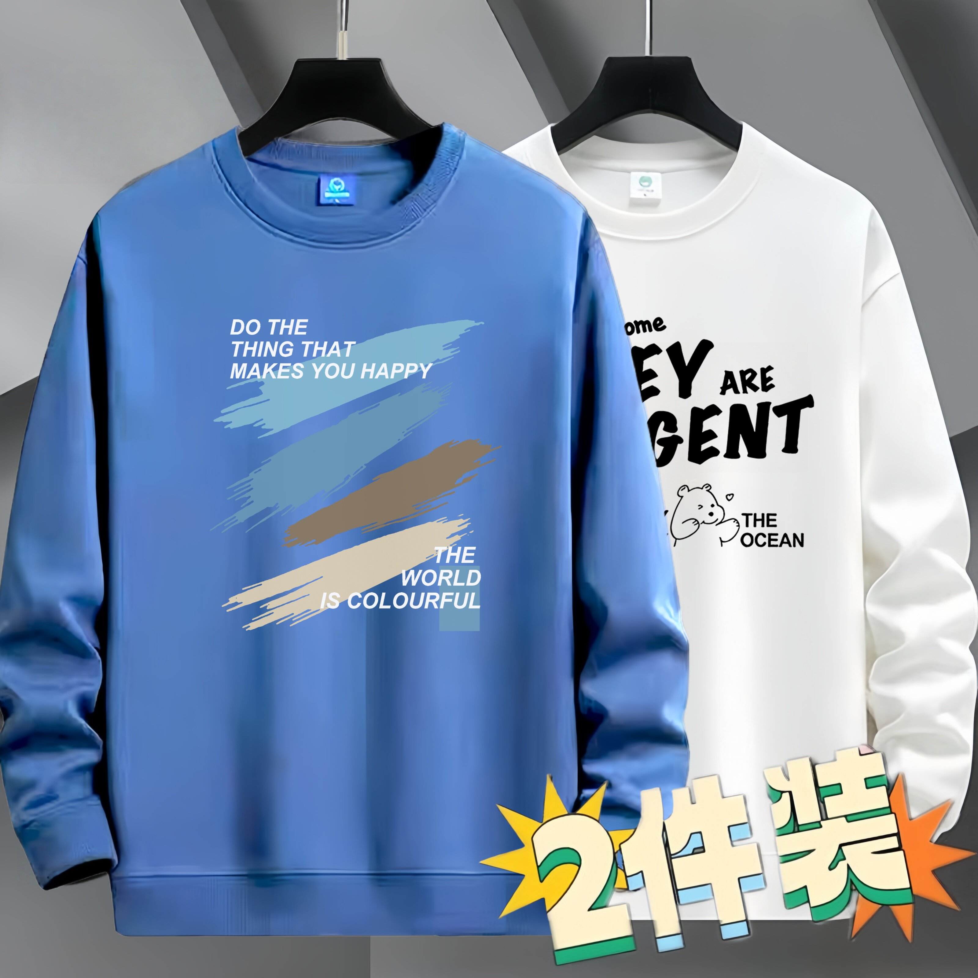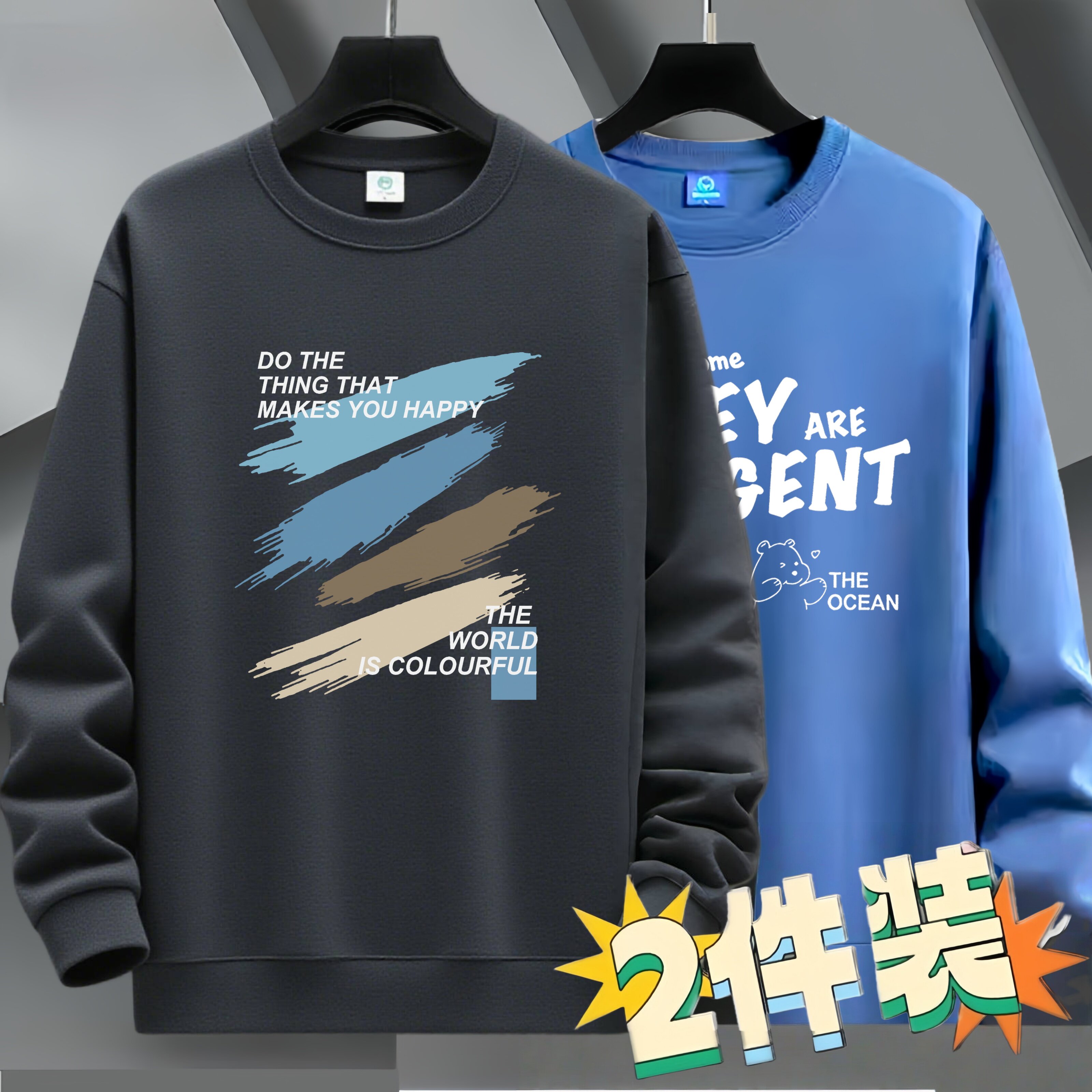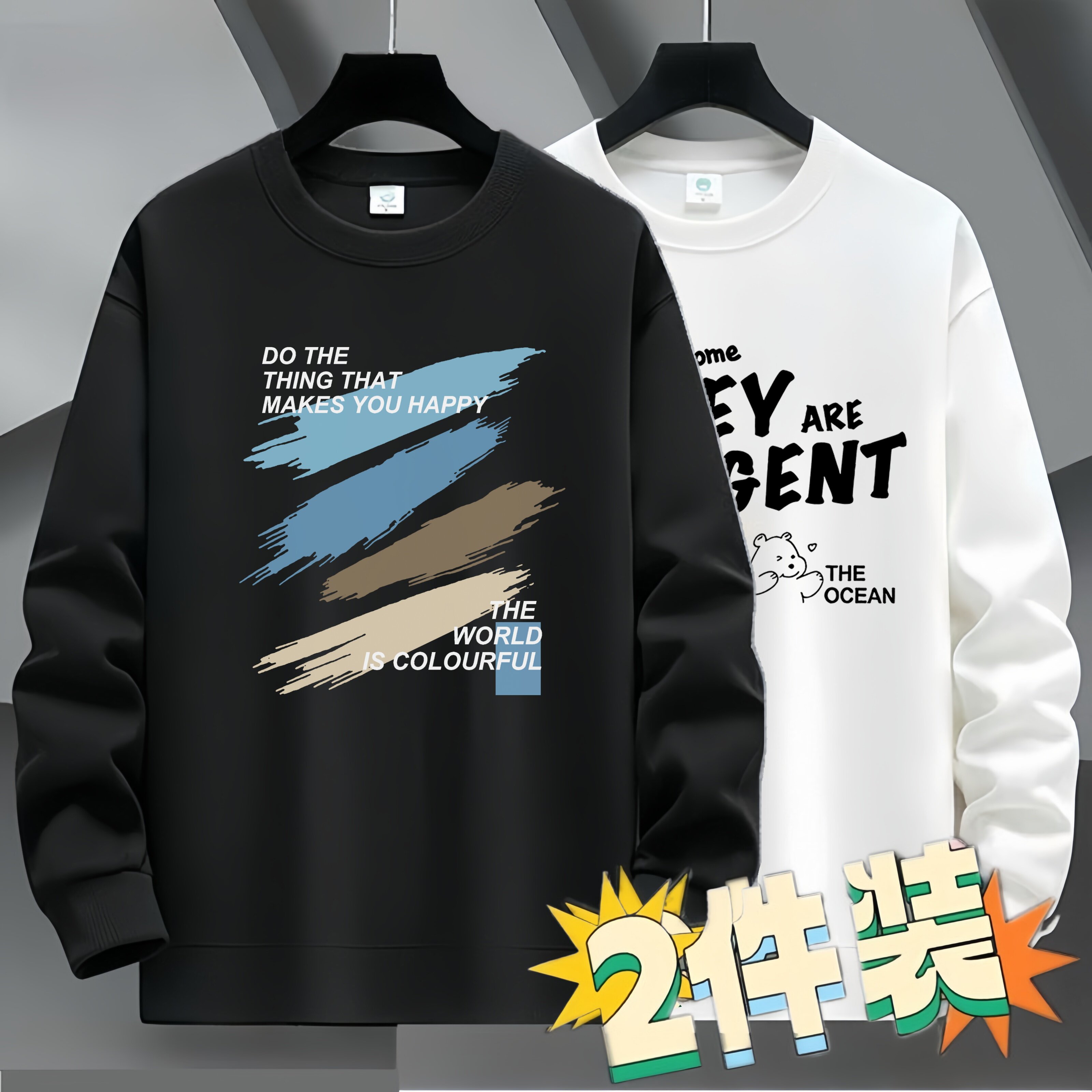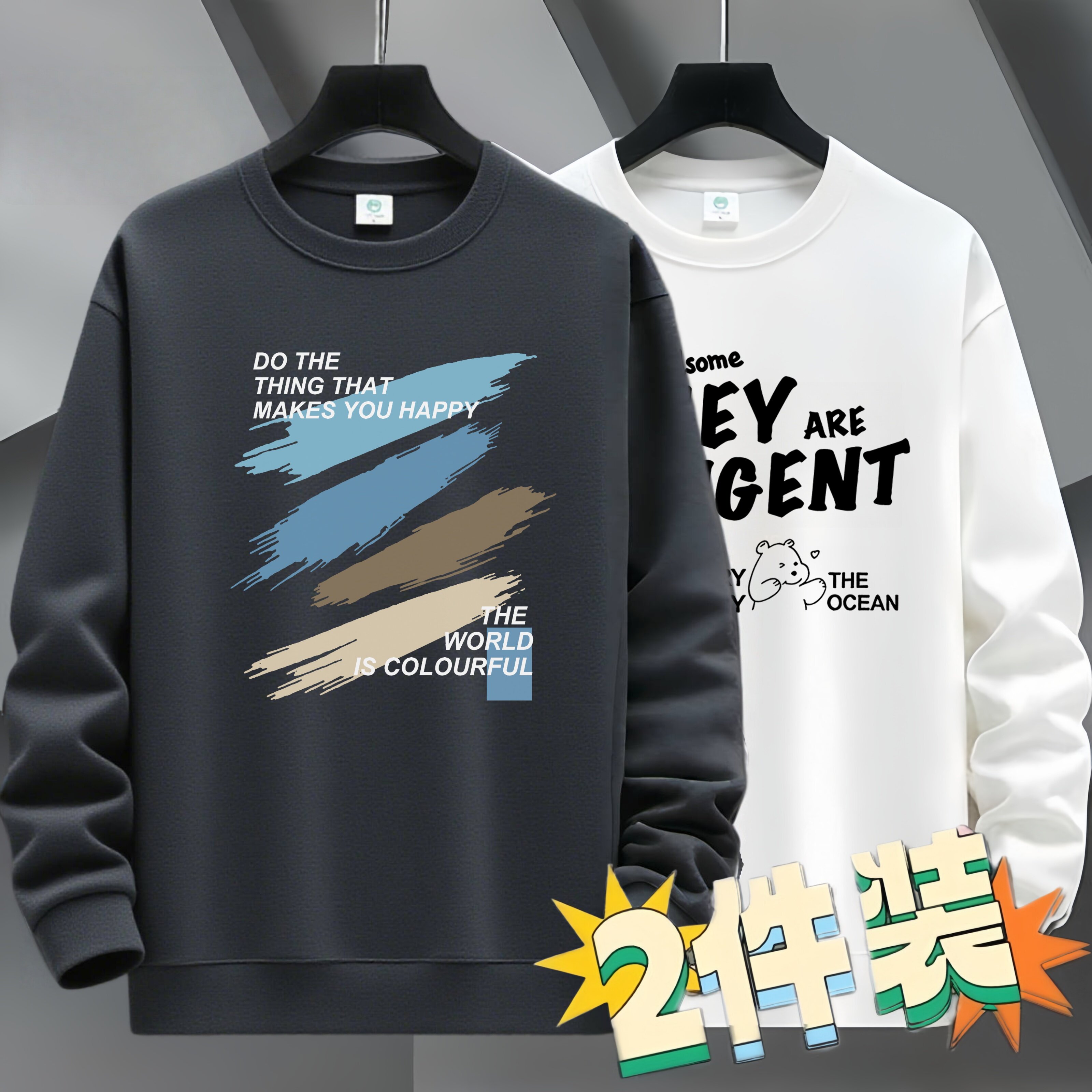 圆领卫衣男款长袖t恤春秋青少年高中学生字母印花上衣服薄款春装