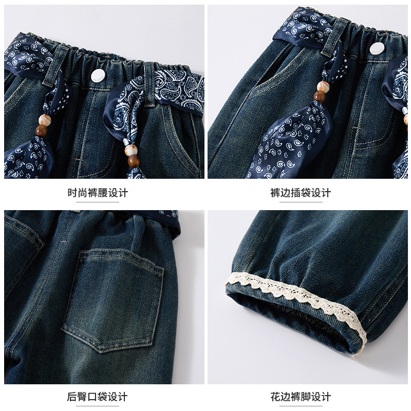女童裤子春装2026新款儿童春季韩系穿搭牛仔裤春秋宝宝春季灯笼裤