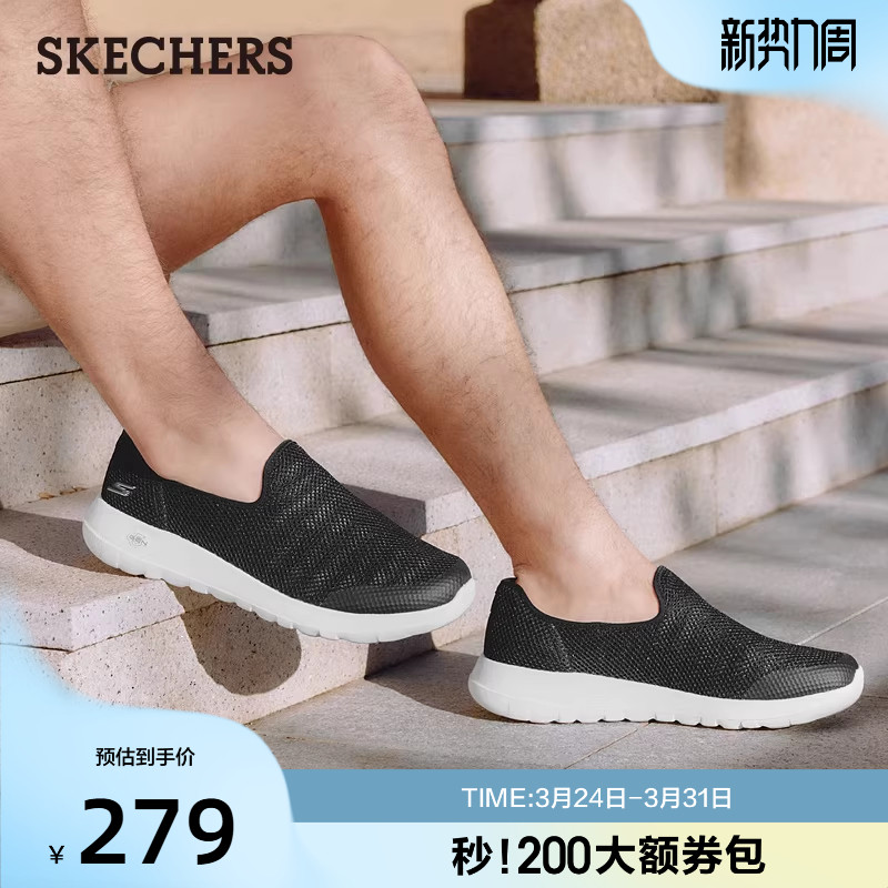 斯凯奇男鞋夏季新款一脚蹬网面健步鞋透气软底大网眼休闲运动鞋