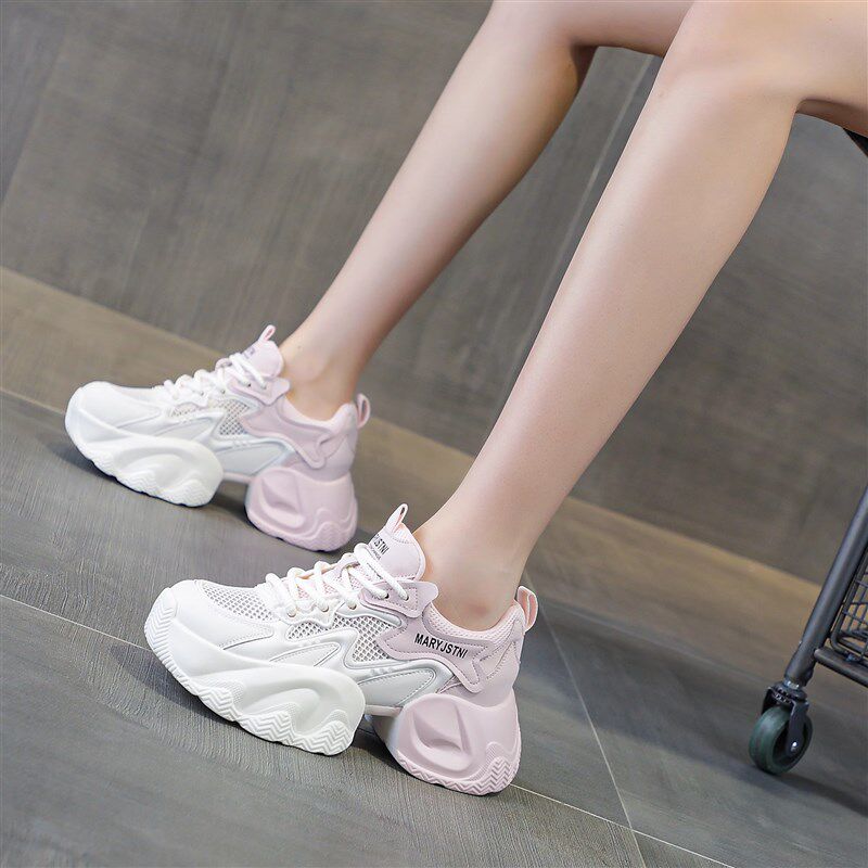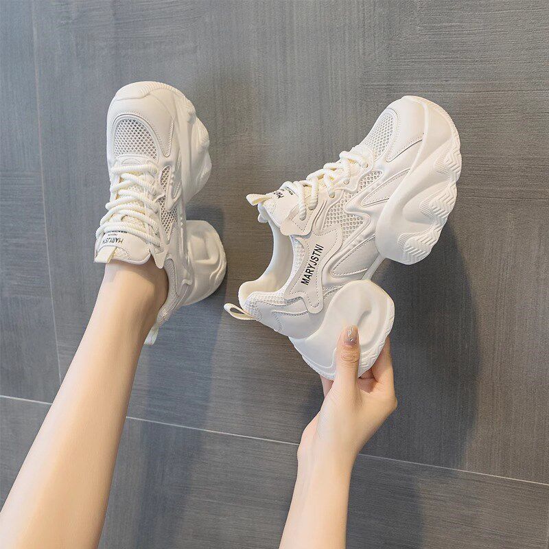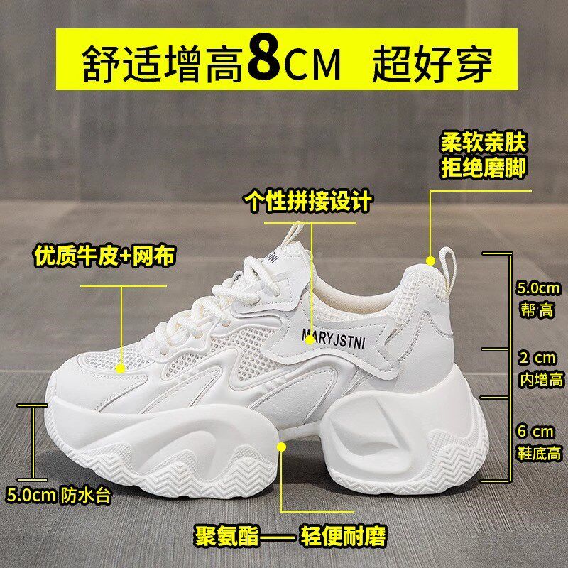 8cm内增高老爹鞋女款2025新款夏季网面透气小个子厚底运动小白鞋