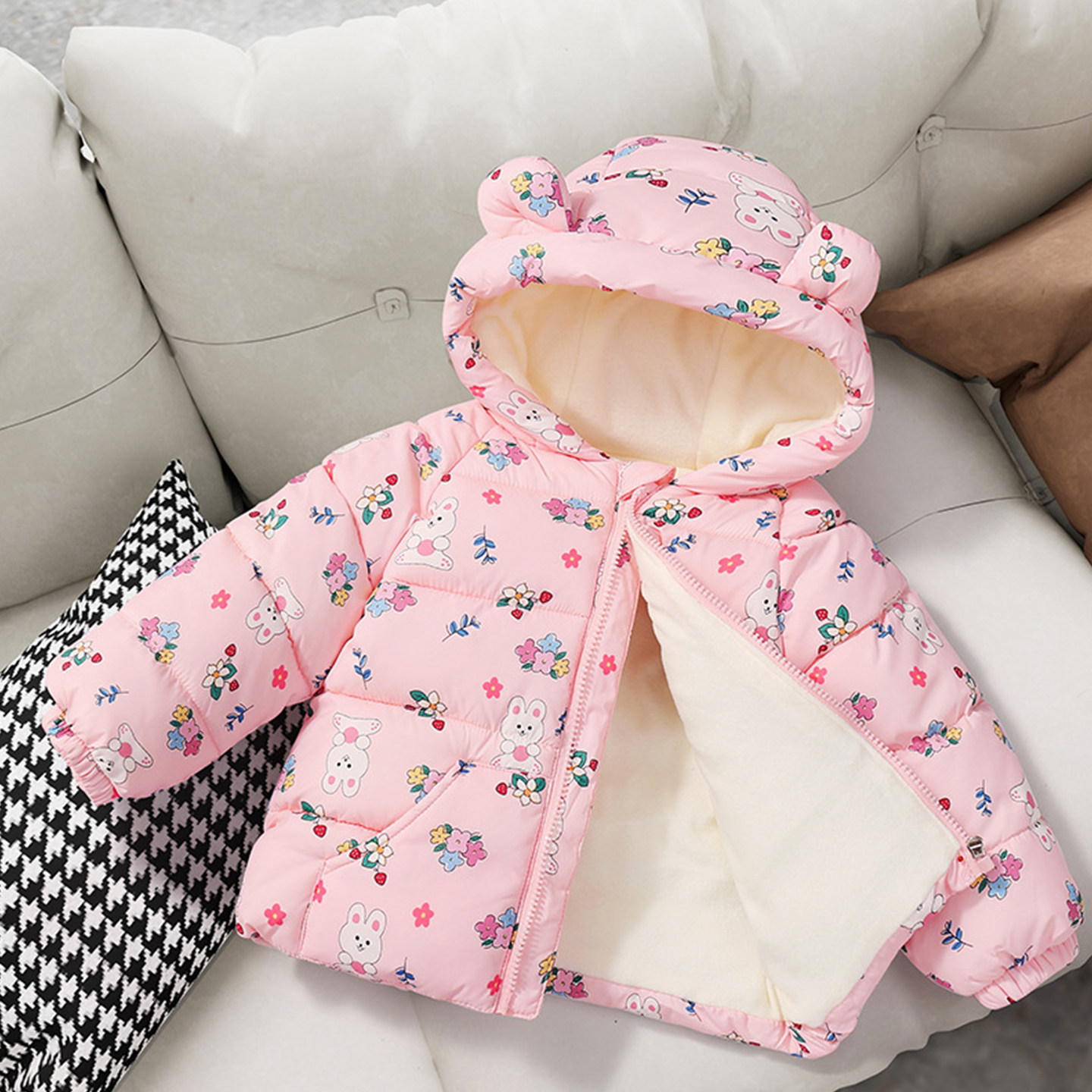 冬季新款男女儿童连帽保暖棉服外套中小宝宝加绒加厚洋气棉袄上衣