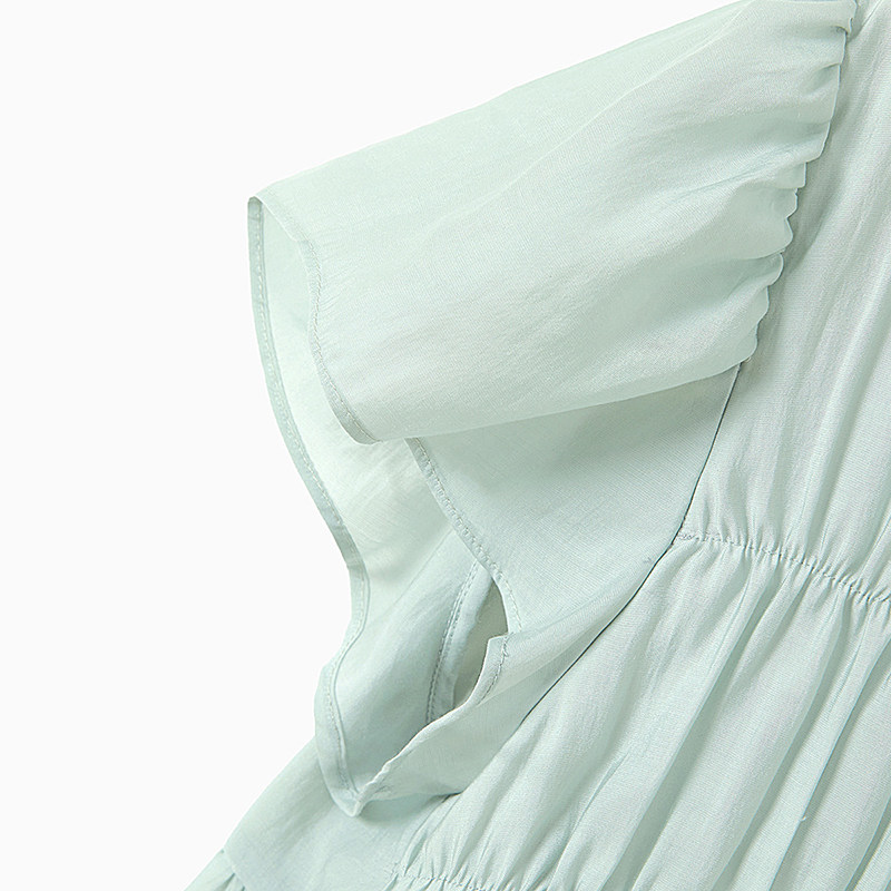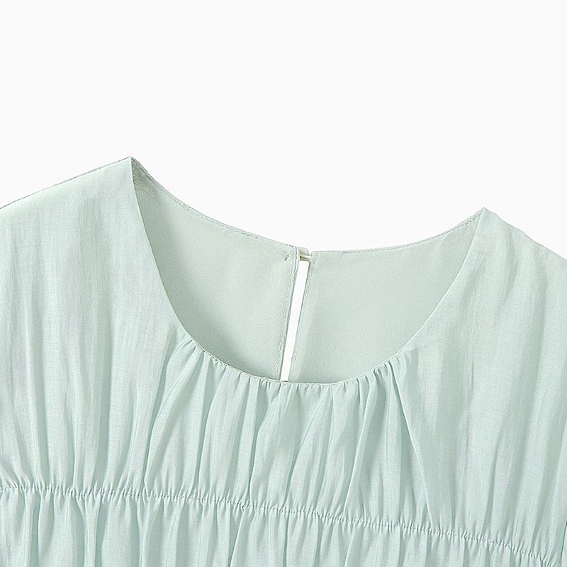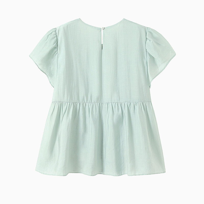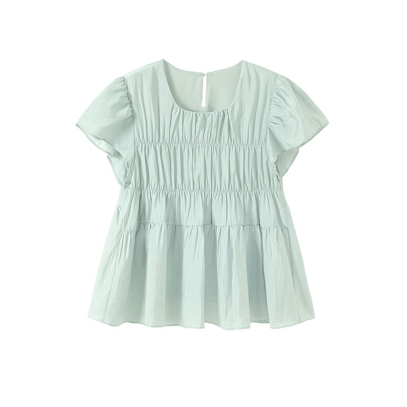 她池短袖衬衫2026夏装新款女装抽褶拼接甜美套头飞飞袖短款衬衣