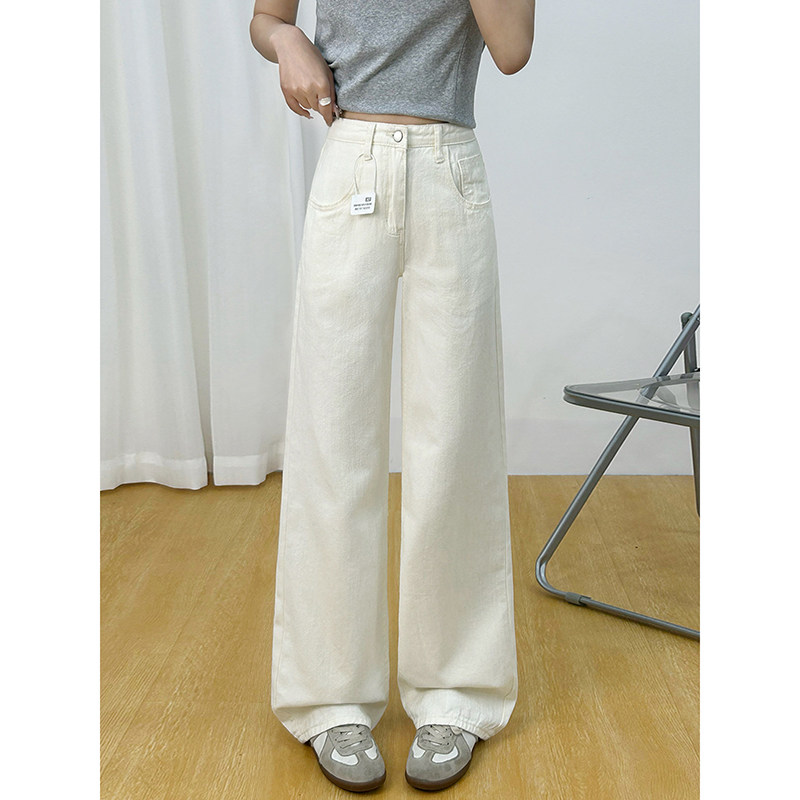 白色小个子阔腿牛仔裤女2026年新款春季高腰窄版时尚百搭直筒裤子