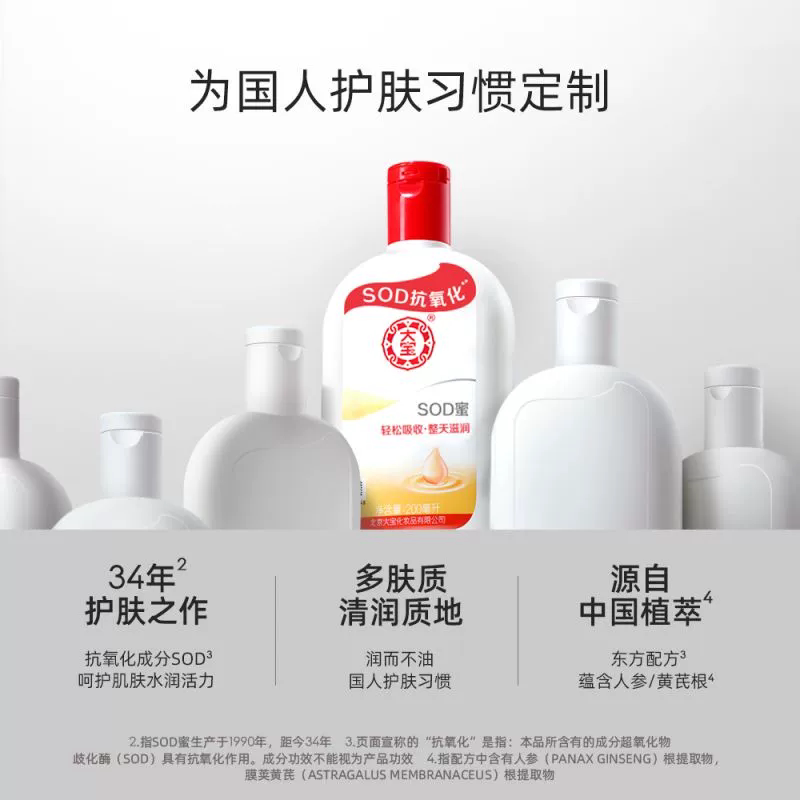 大宝SOD蜜200ml滋润保湿补水女男士专用面霜润肤乳液官方官网正品