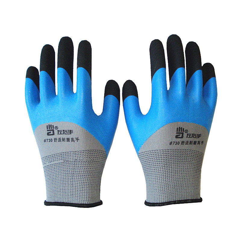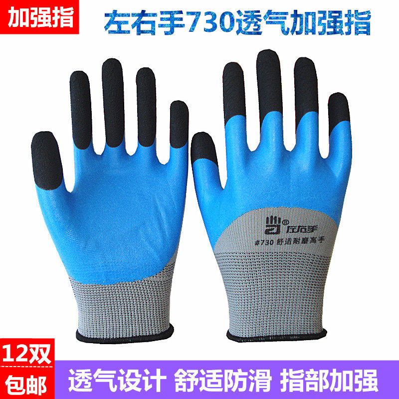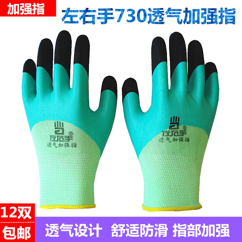 左右手730兴达658乳胶透气发泡王加强指耐磨防滑工作浸胶劳保手套