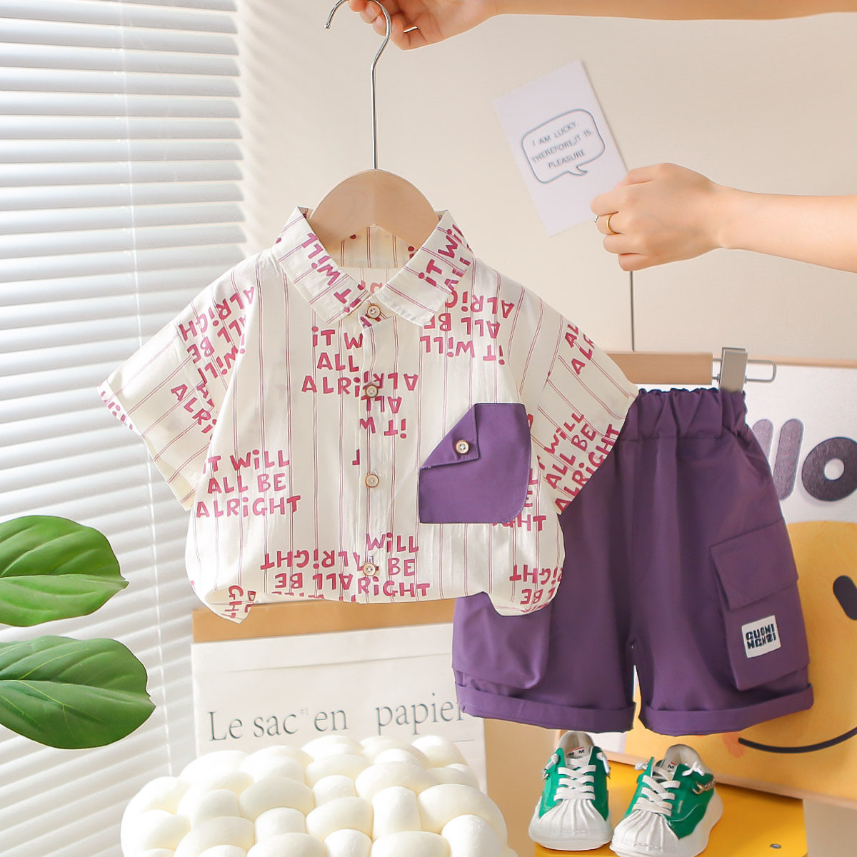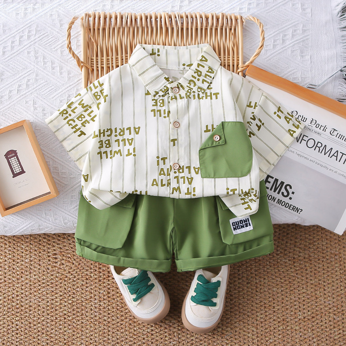 男童夏季衬衫套装酷帅2026新款洋气宝宝夏装儿童短袖两件套潮童装