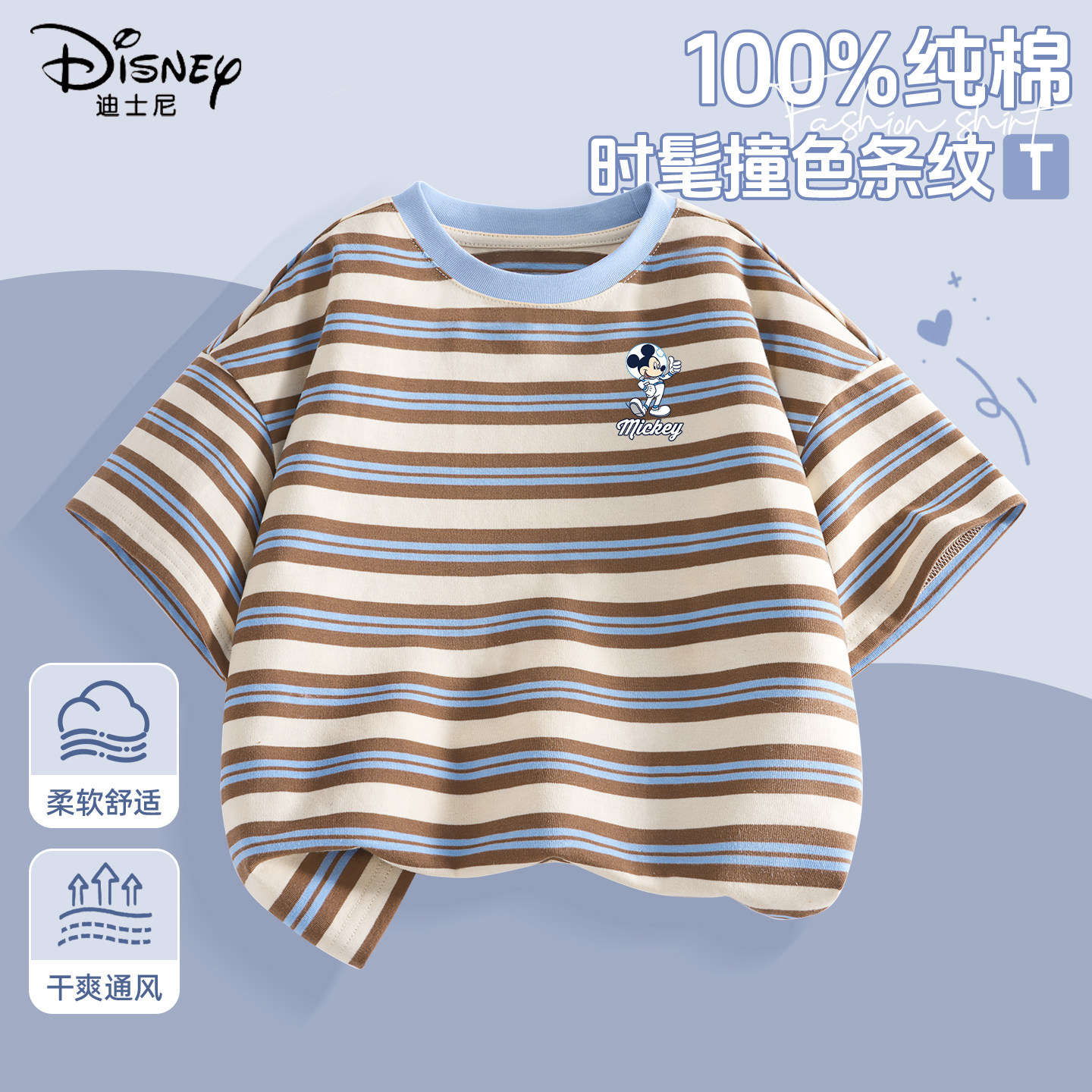 迪士尼男童t恤短袖纯棉2026新款运动帅气夏装小男孩衣服儿童上衣