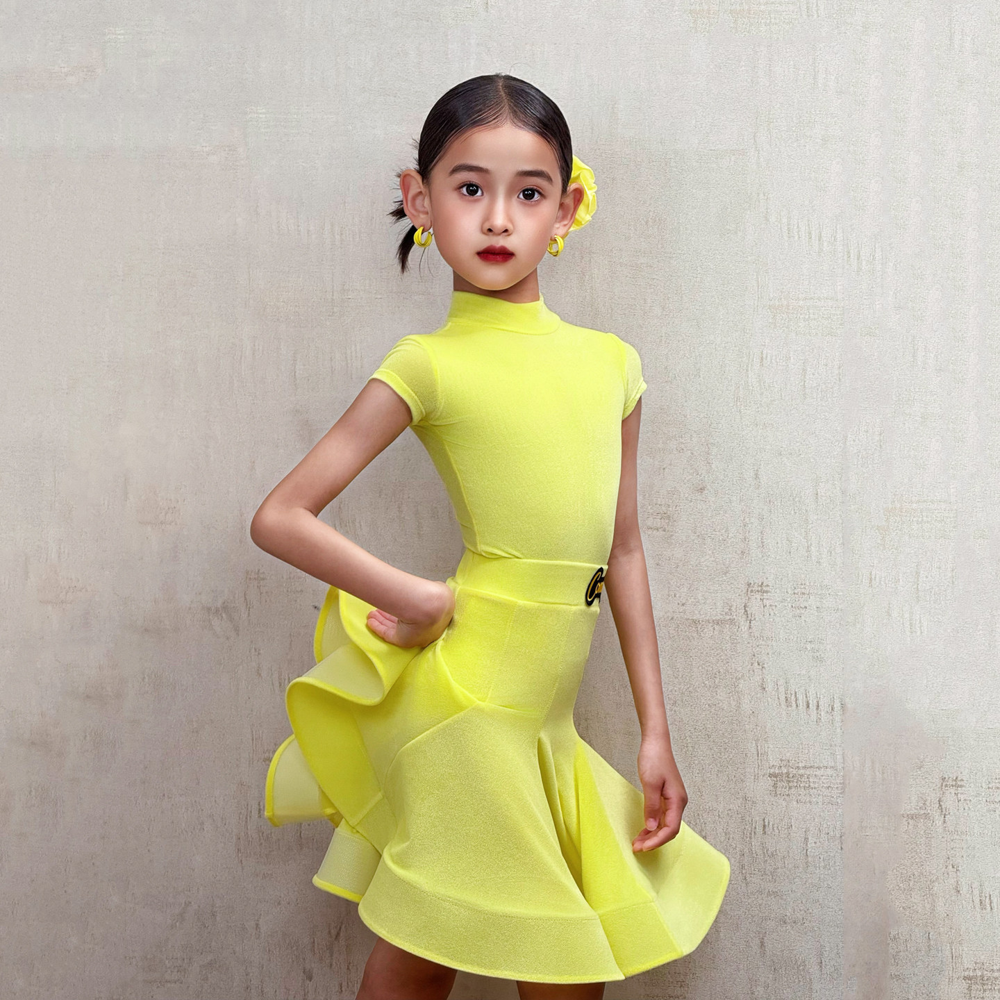 CONNY拉丁舞比赛专用规定服分体鱼骨裙子女儿童演出表演服装短袖