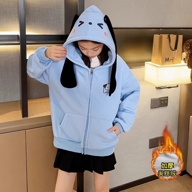 女童外套春秋款2025新款洋气儿童装帕恰狗长耳朵连帽秋装加厚卫衣