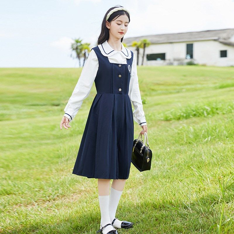 女大童春秋款连衣裙儿童洋气春装初中学生背带裙子女童学院风套装