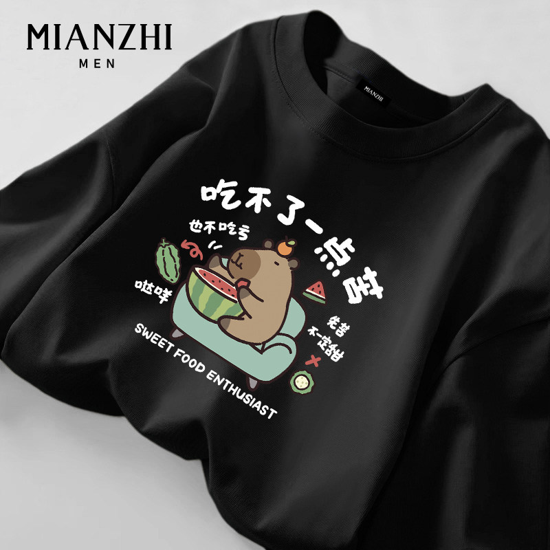 棉致不吃苦卡皮巴拉趣味纯棉长袖男款t恤潮流大码宽松秋季上衣服