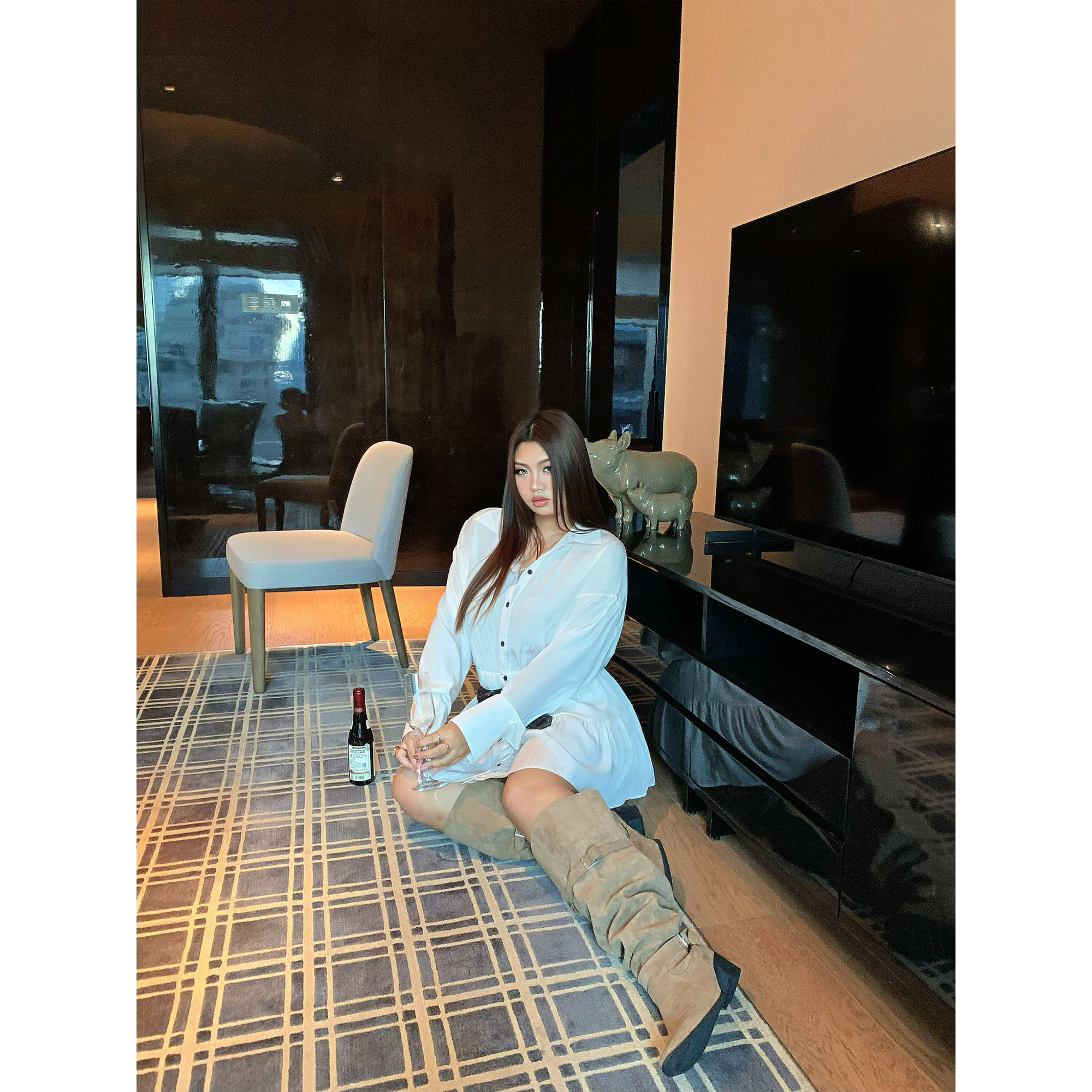 楠哥微胖mm法式气质白色衬衫长袖连衣裙女春夏秋大码纯欲收腰短裙
