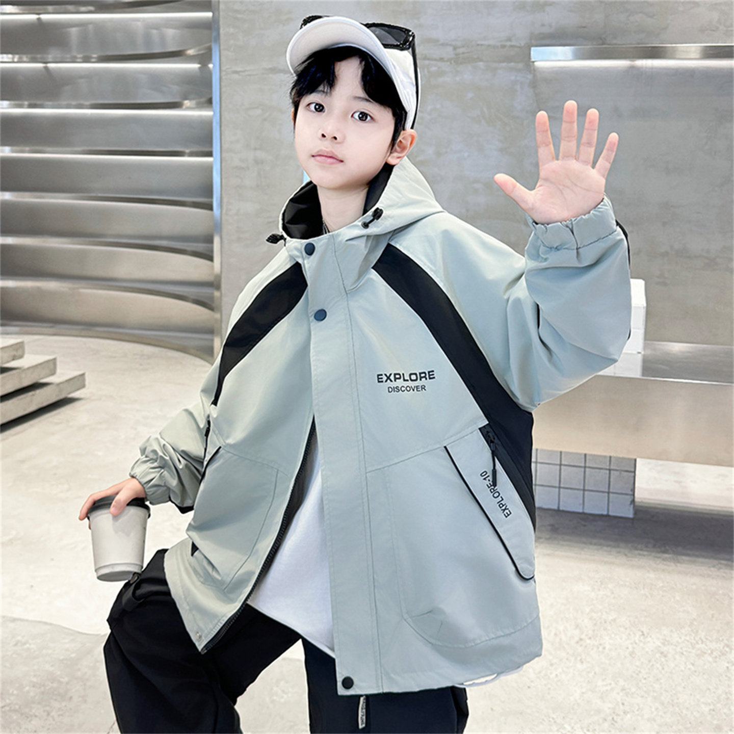 男童外套春秋款2026新款儿童秋装上衣中大男孩秋季连帽防风冲锋衣