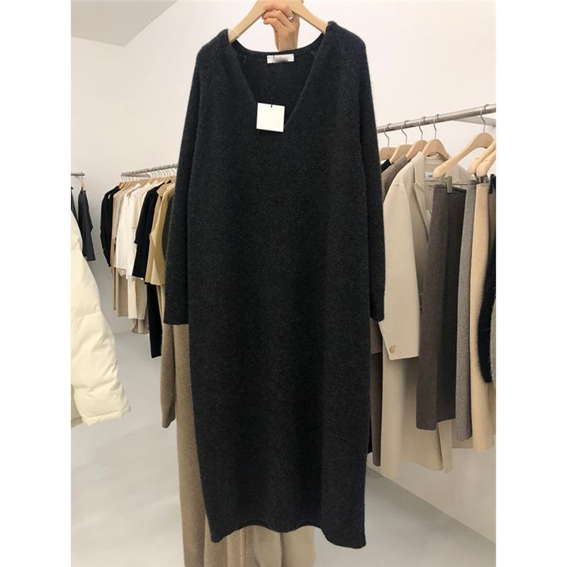 大码胖MM300斤秋冬长款毛衣连衣裙过膝宽松遮肉配大衣针织打底裙