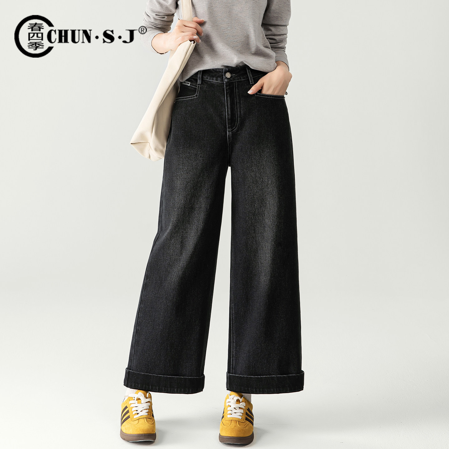 版型超好看的裤子A版阔腿牛仔裤女2026新款春季九分直筒黑色女裤