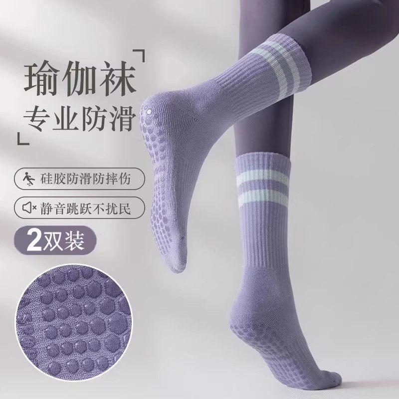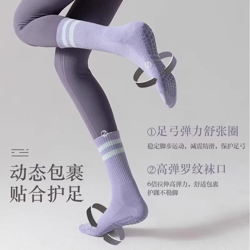瑜伽袜子防滑专业女普拉提加厚运动健身跑步跳绳高中筒压力防滑袜