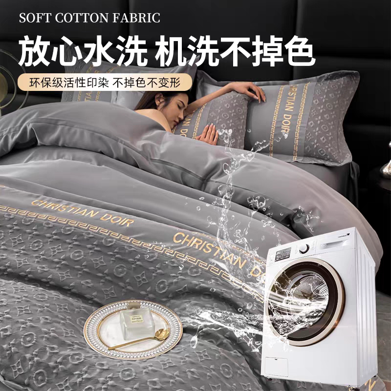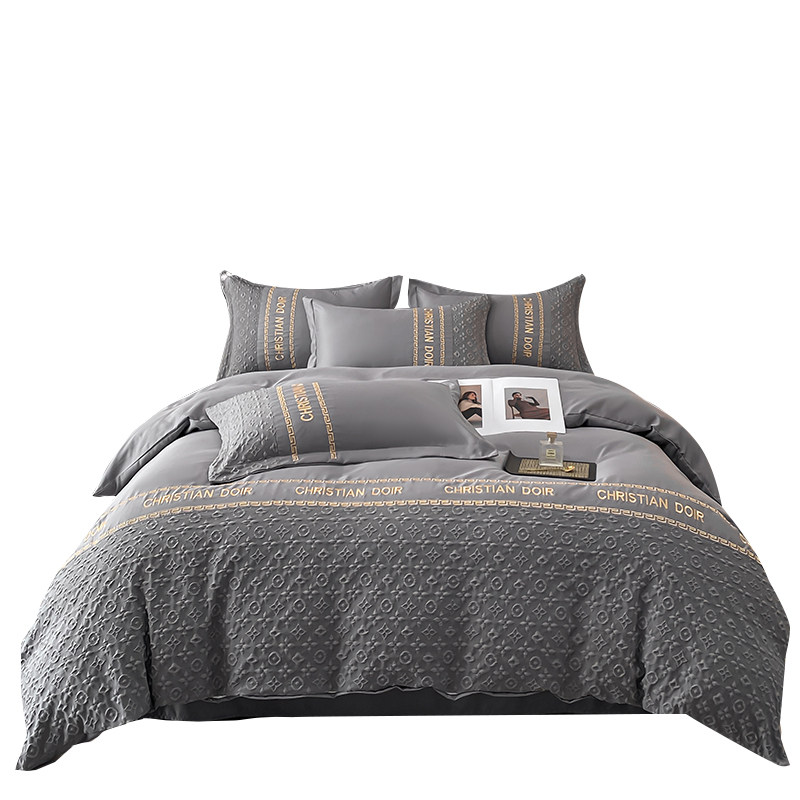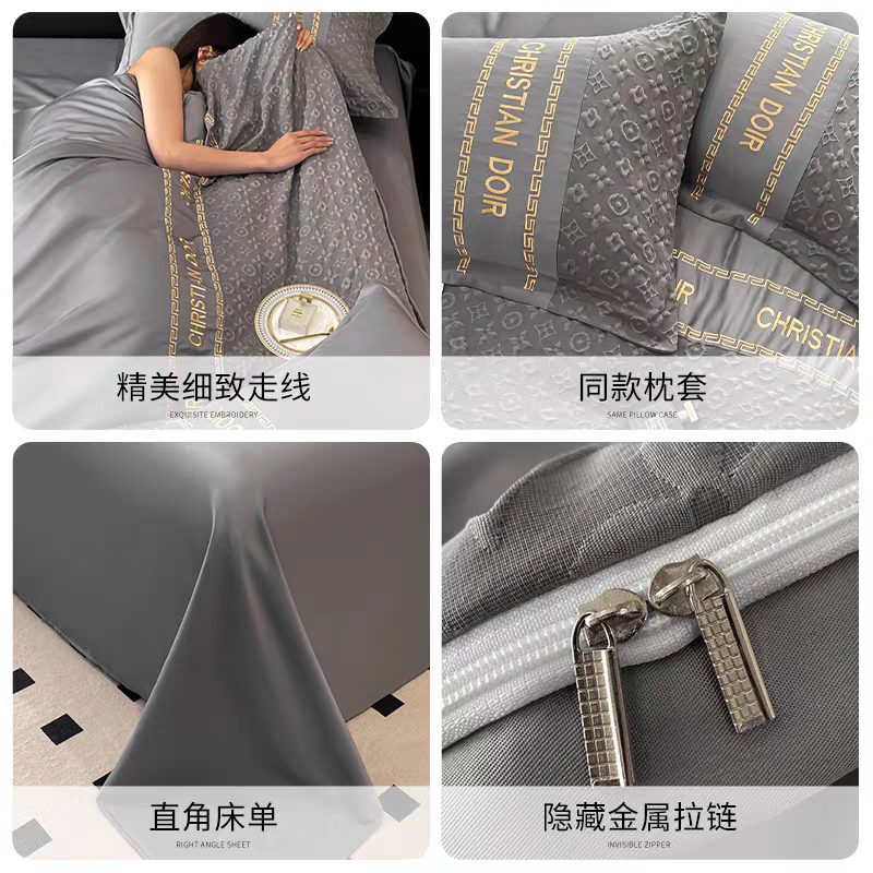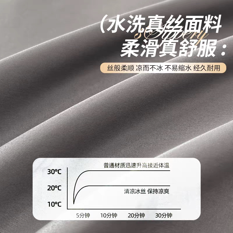 轻奢高级感冰丝四件套夏季水洗真丝裸睡男士被套床单三件套床笠款