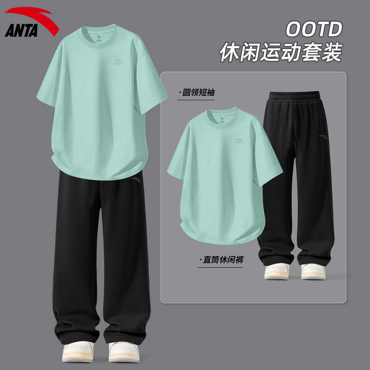 安踏运动套装男宽松透气短袖长裤青少年2026夏季新款潮流休闲一套
