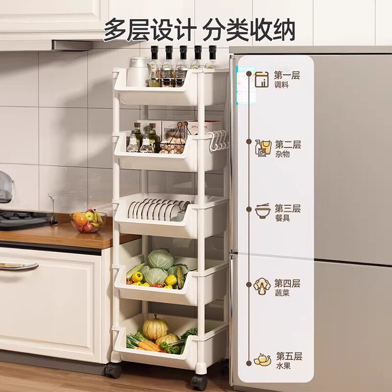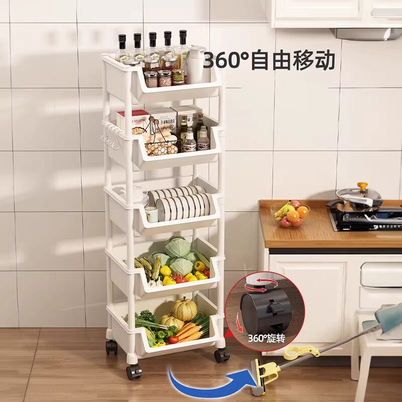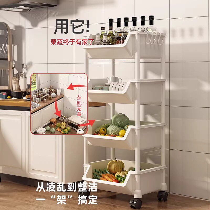 厨房置物架落地多层可移动小推车多功能零食收纳架蔬菜篮子储物架