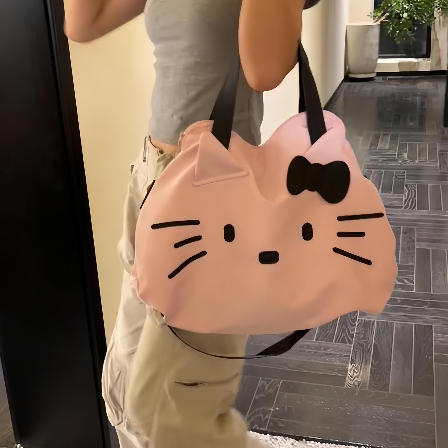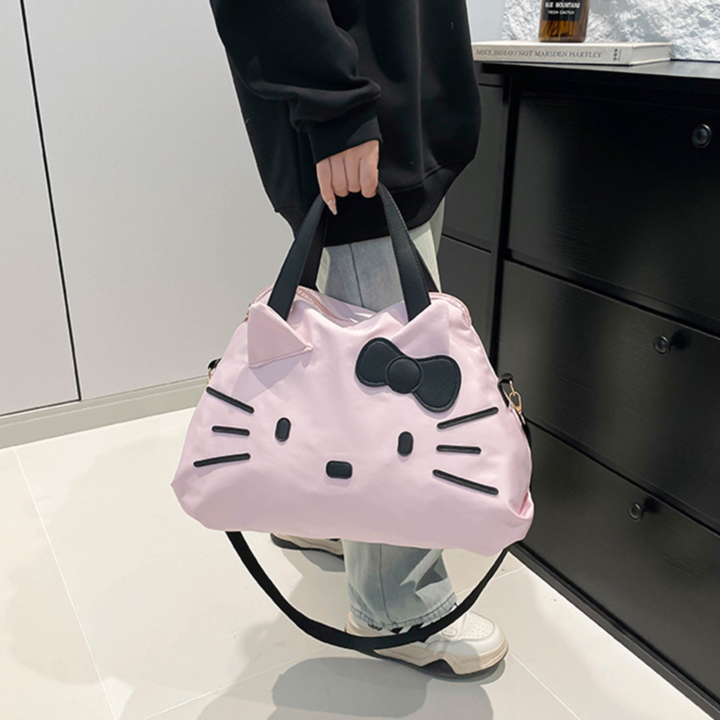 甜美kt健身包女士外出旅行包时尚大容量短途行李袋手提可挂行李箱