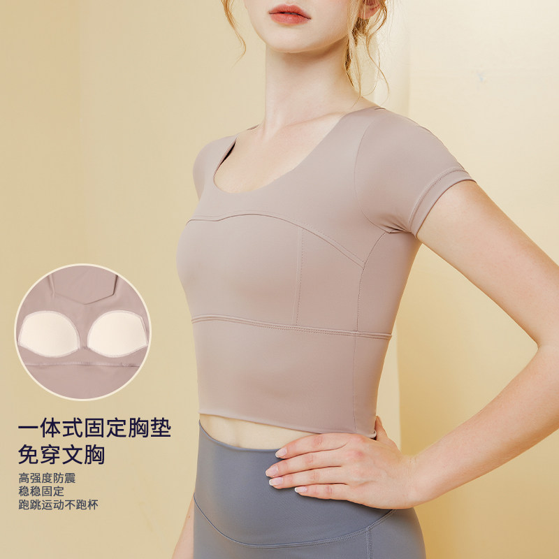 瑜伽服夏女带胸垫健身上衣速干衣T恤显瘦紧身普拉提运动短袖套装