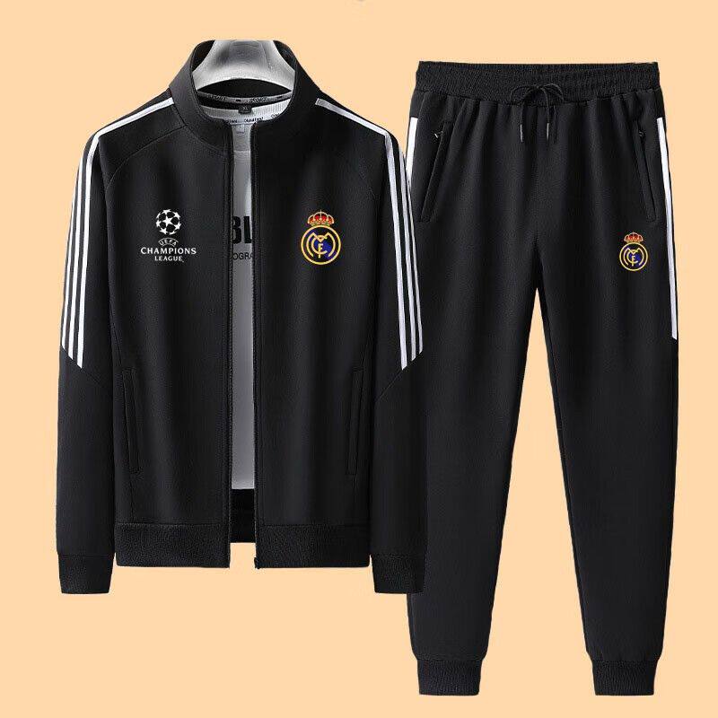 欧冠皇马足球运动卫衣服套装男女春秋季青少年训练长裤开衫外套
