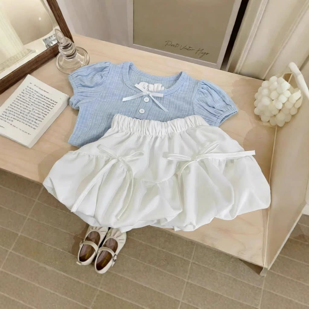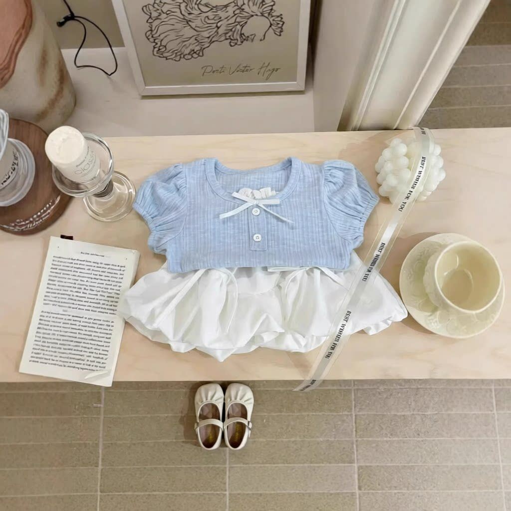 夏季宝宝薄款女童韩版儿童休闲衣服短袖T恤上衣+半身短裙两件套装