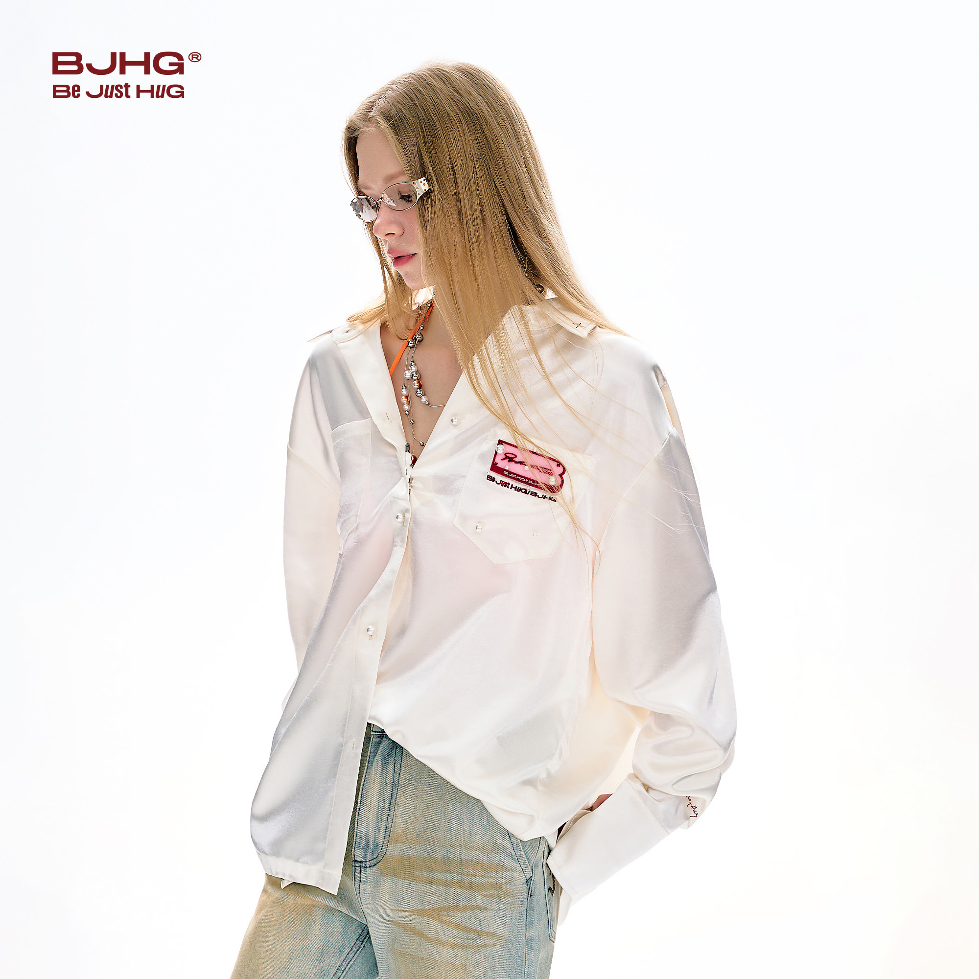 BJHG不计后果高级感白色衬衫女款2026新款春季潮牌美式宽松衬衣女
