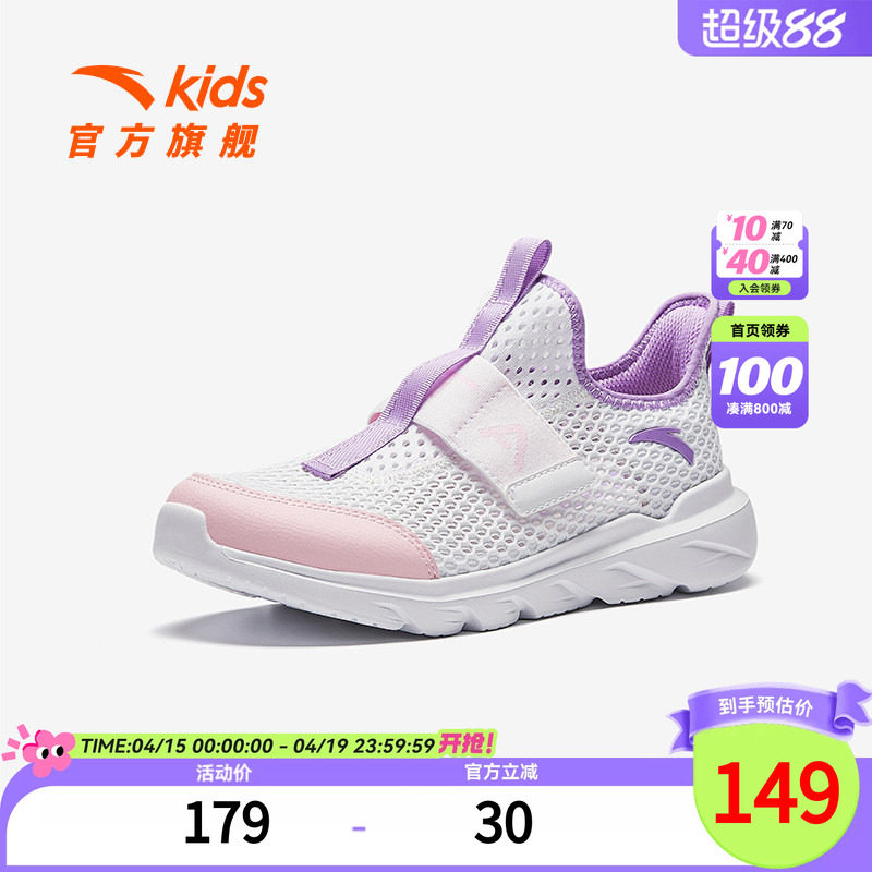 安踏童鞋儿童女大童休闲鞋2026夏季新款透气运动鞋网眼一脚蹬鞋子
