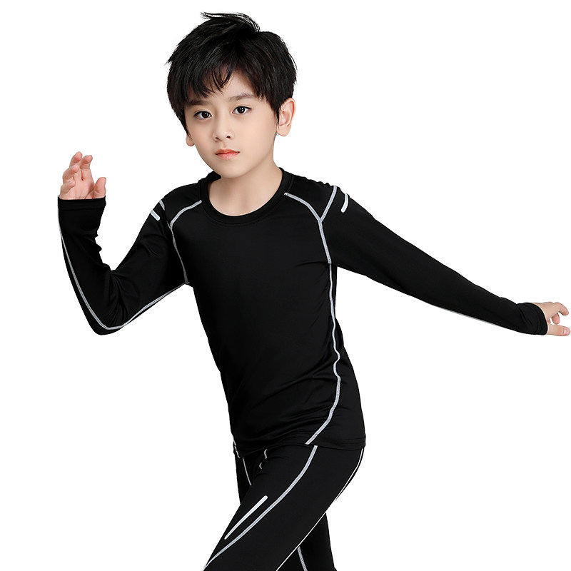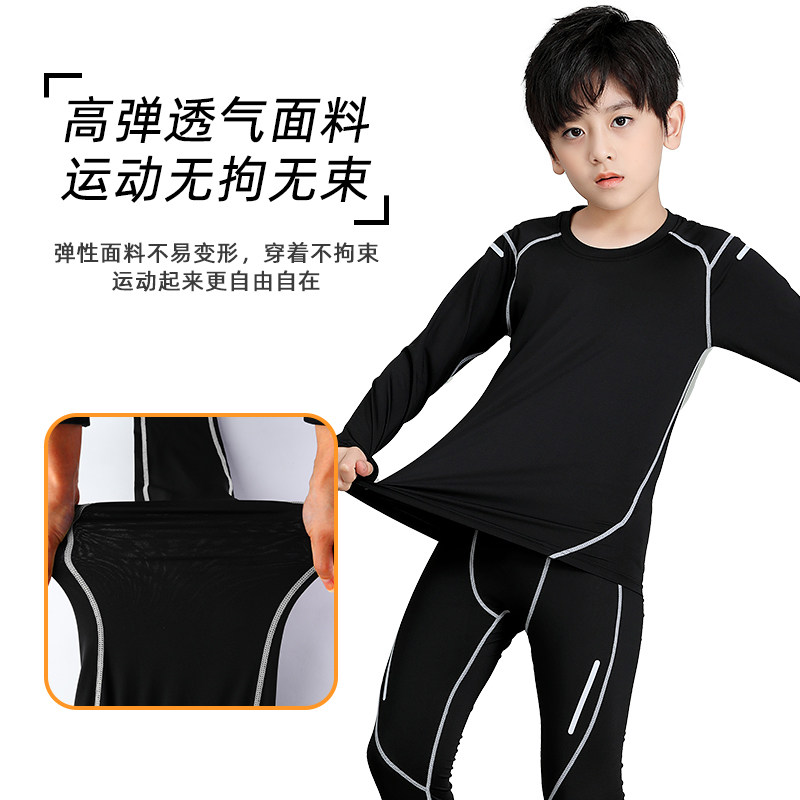 儿童紧身篮球服紧身衣训练服秋冬跑步打底男童跳绳内搭运动套装女