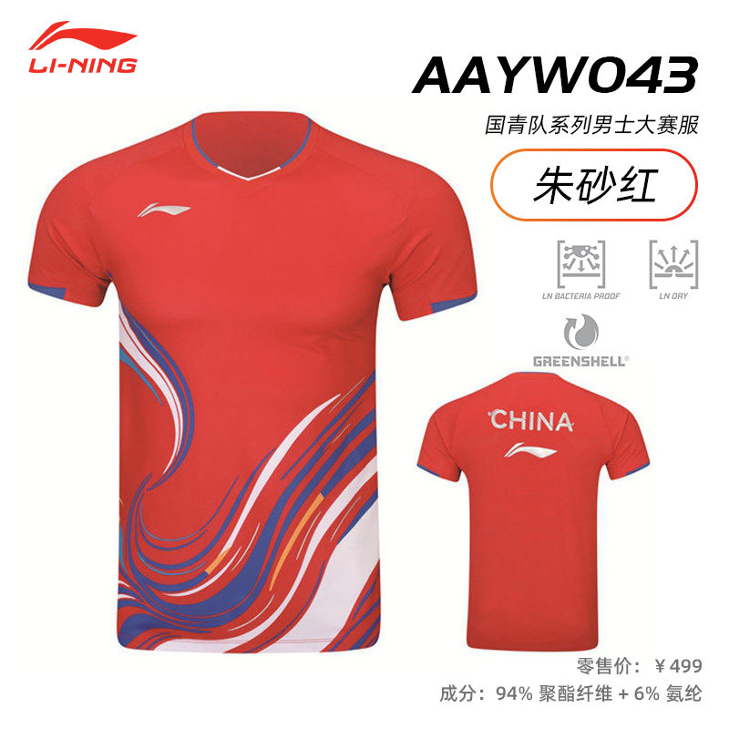 2026新款李宁羽毛球服国青队大赛服男女款球衣短袖比赛服AAYW043