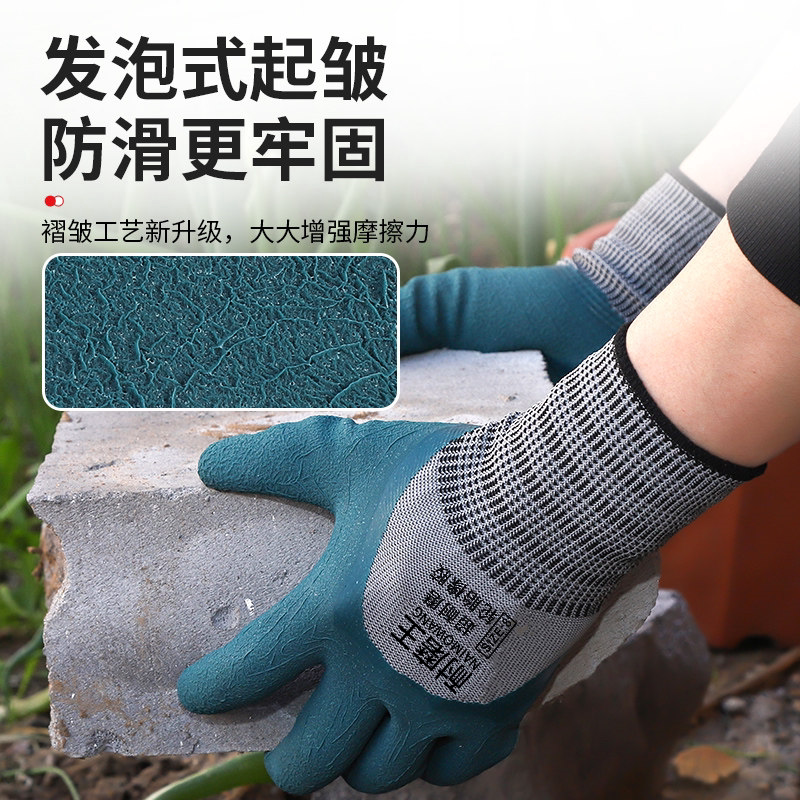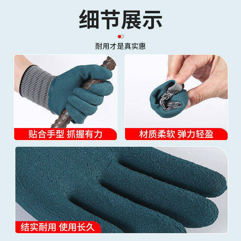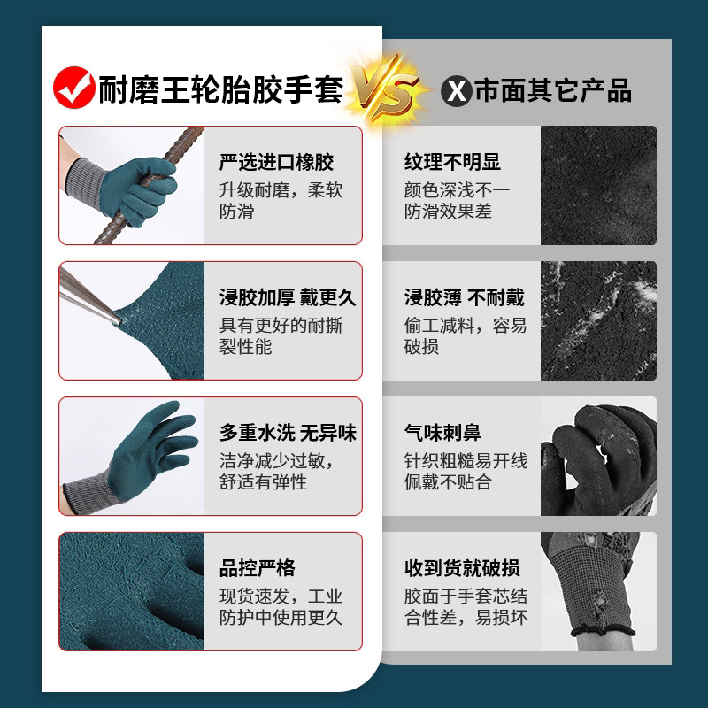 手套工作劳保耐磨防滑加厚劳动乳胶橡胶防护干活工地浸胶防水轮胎