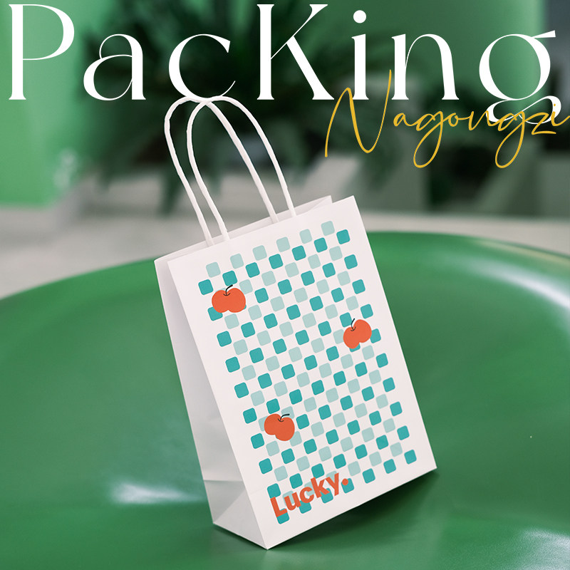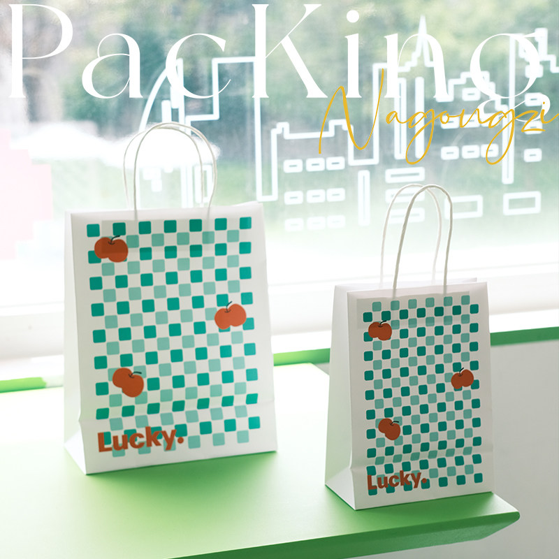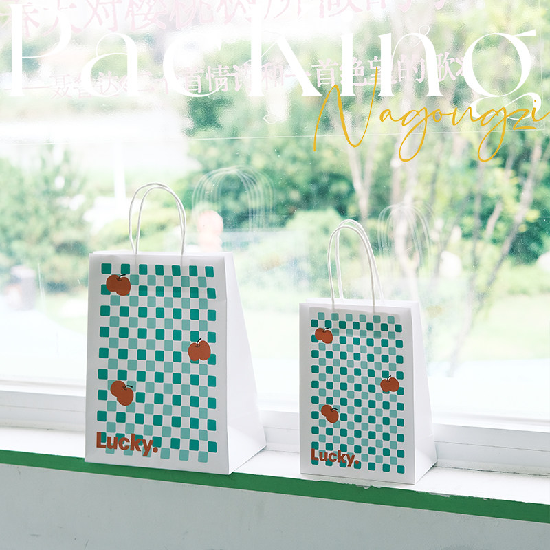 樱桃绿色格子烘焙手提袋甜品打包袋定制面包店外卖小袋子牛皮纸袋
