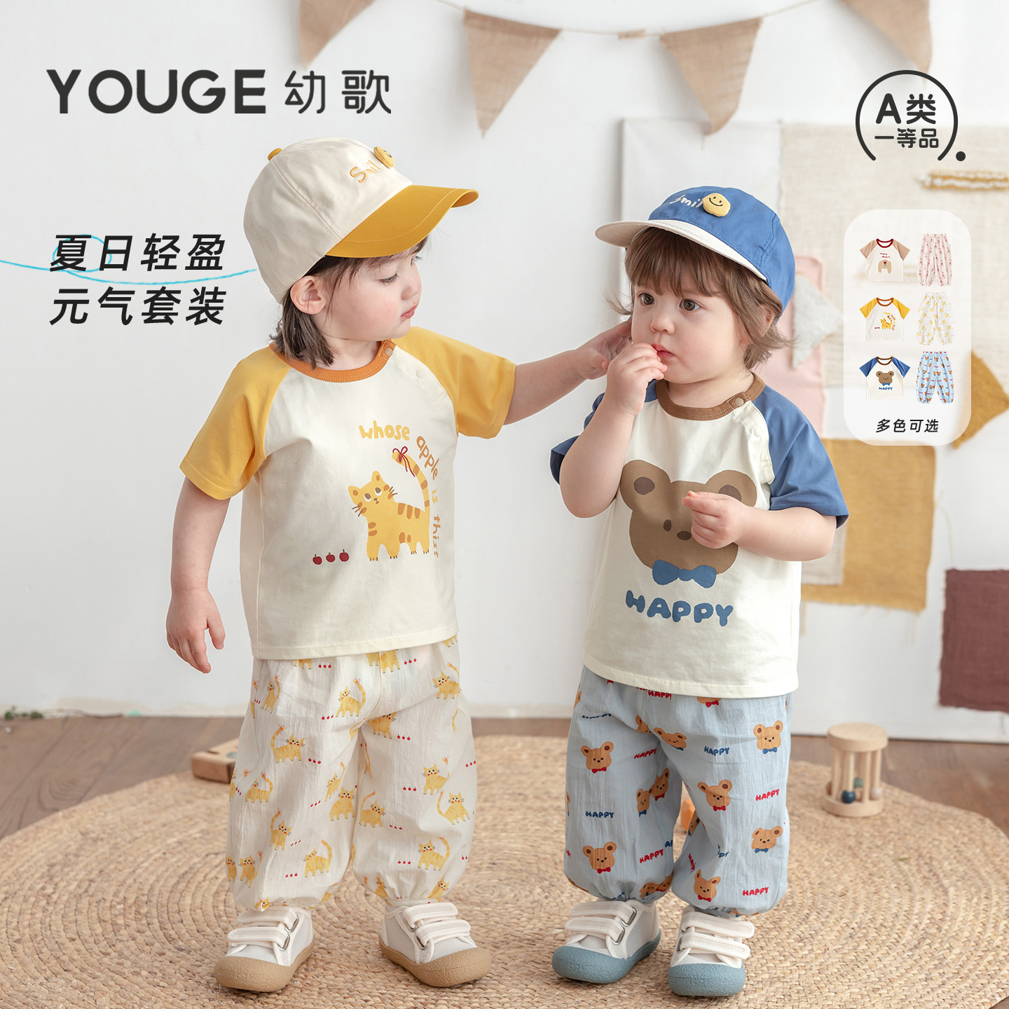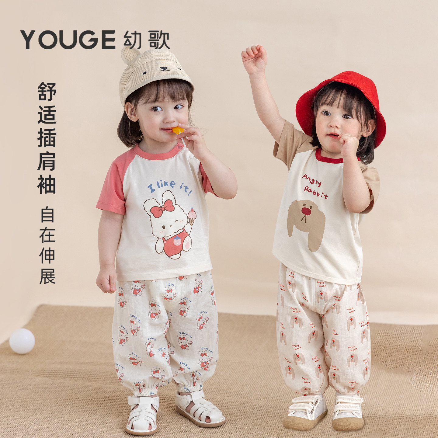 【李佳琦直播间】YOUGE幼歌 儿童可爱卡通短袖T恤裤子