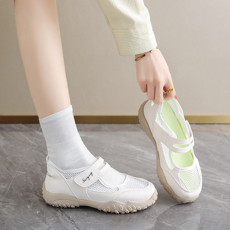 双星2026夏季网面女鞋时尚透气运动鞋魔术贴德训鞋软底休闲运动鞋