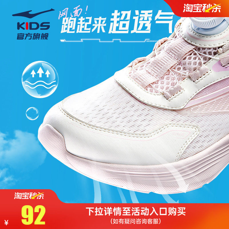 流光E彩|鸿星尔克童鞋儿童运动鞋夏季女童网面透气旋钮扣跑步鞋