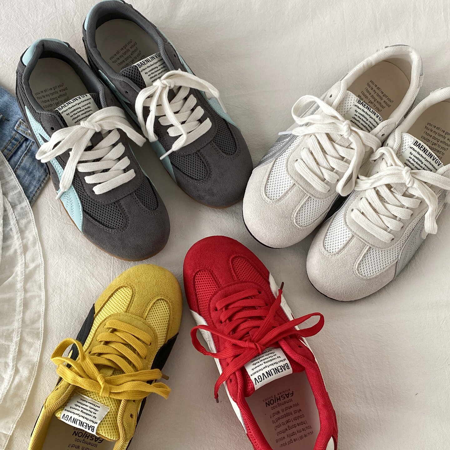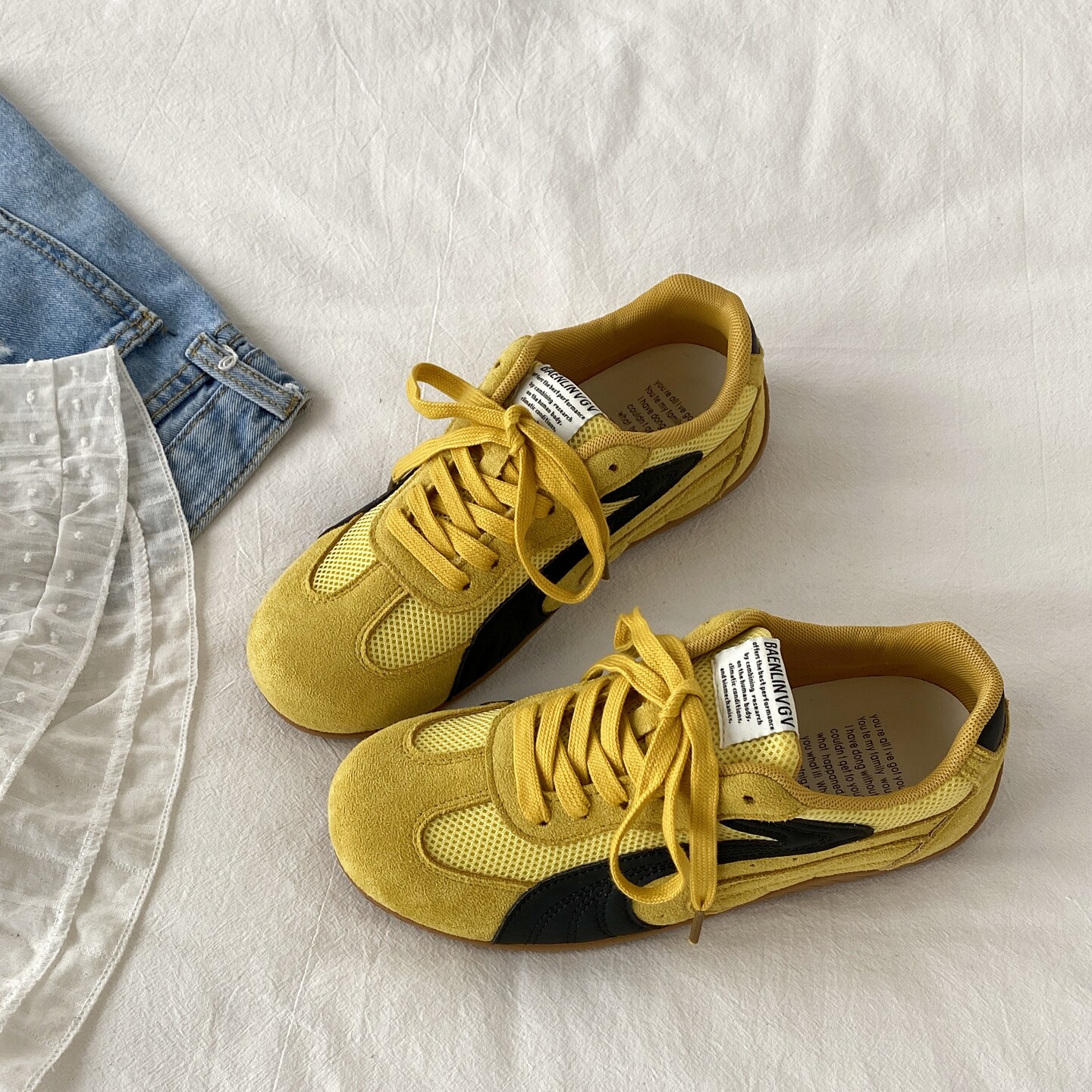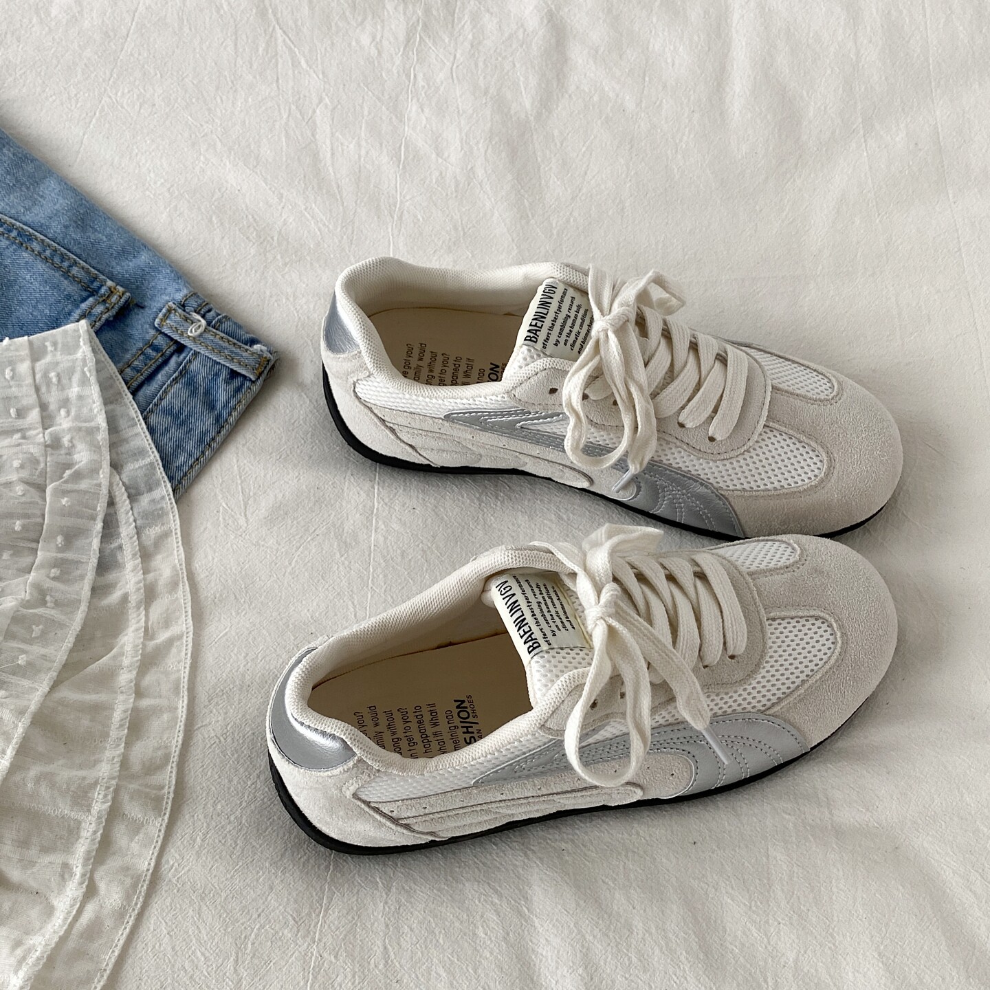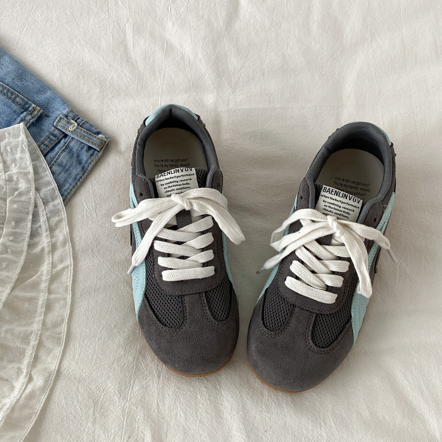 喜叔灰蓝色小众薄底赛车鞋女款春季透气网面德训鞋运动休闲阿甘鞋