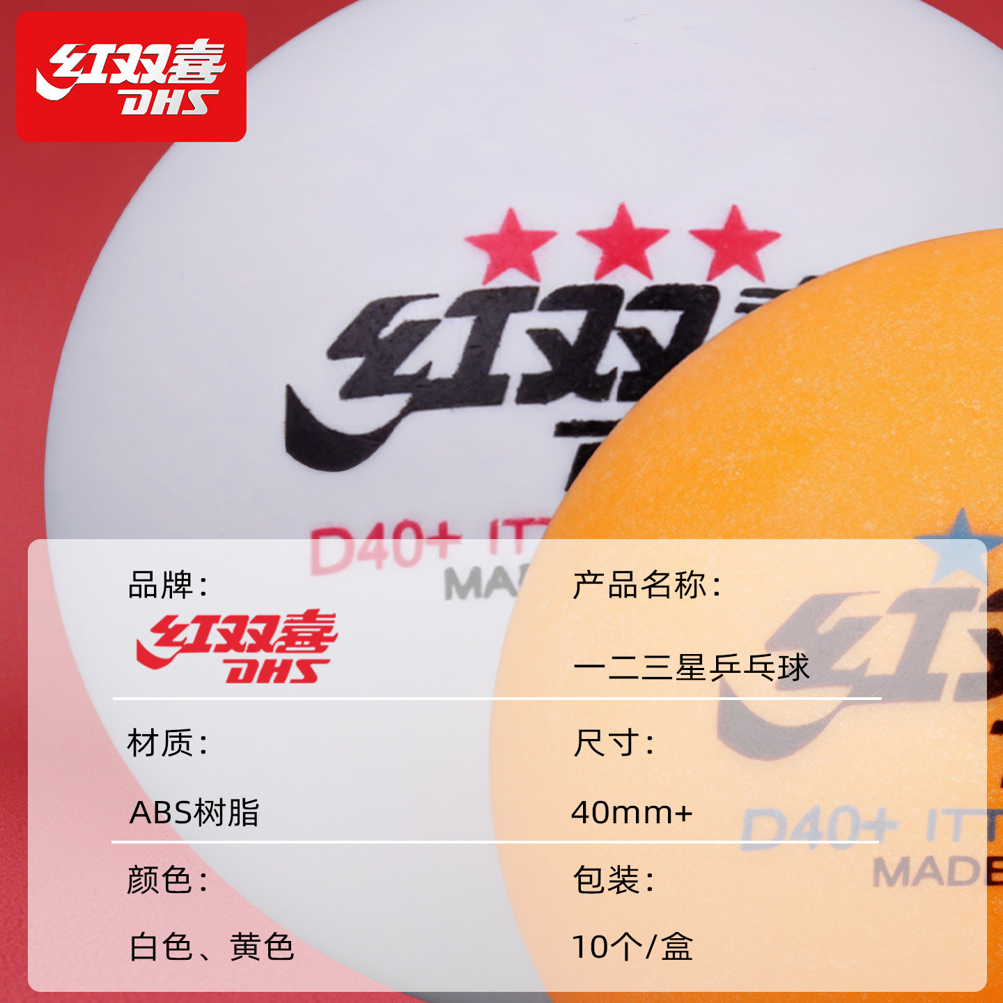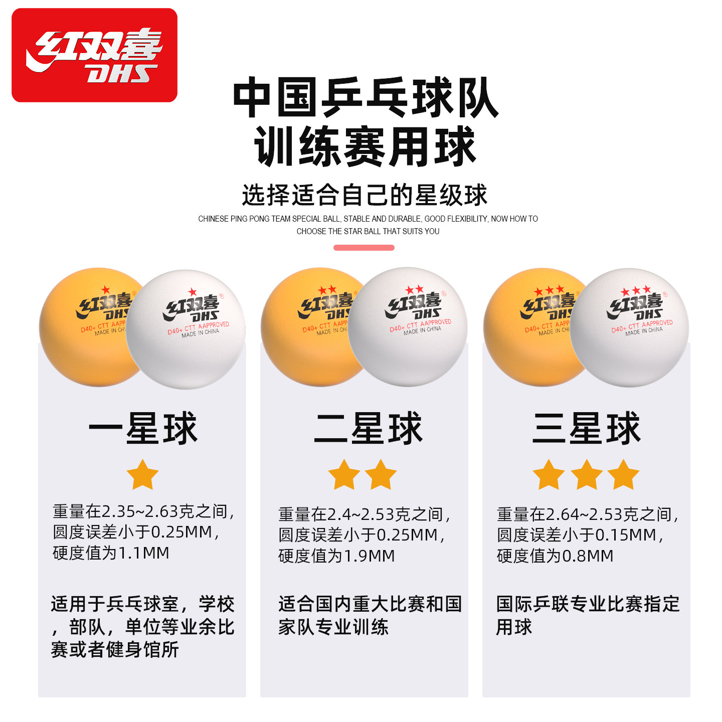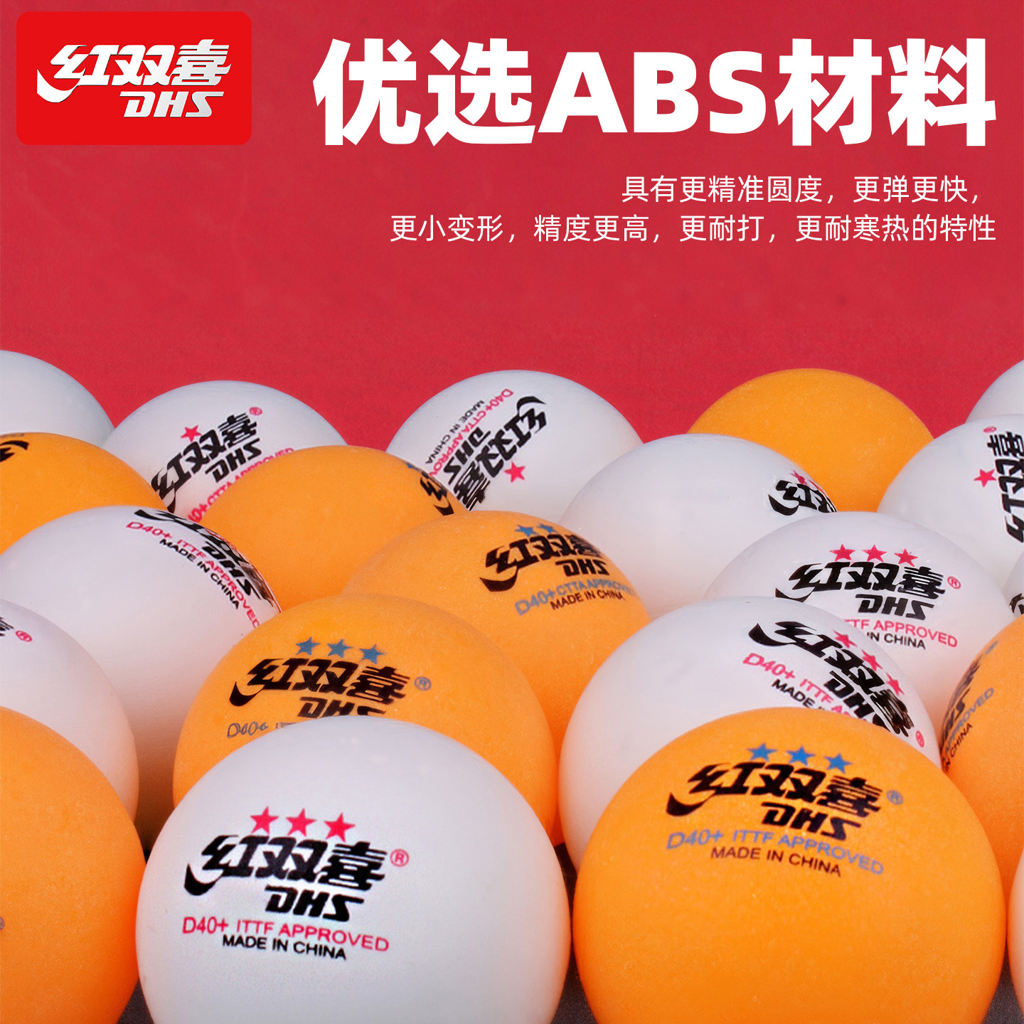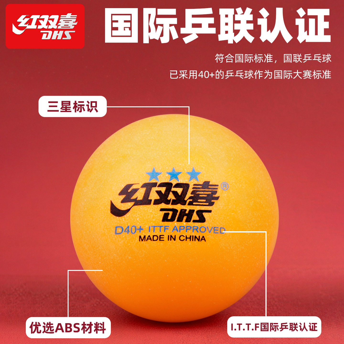 红双喜三星乒乓球正品比赛训练球专用赛顶D40+室内家用一二三级球