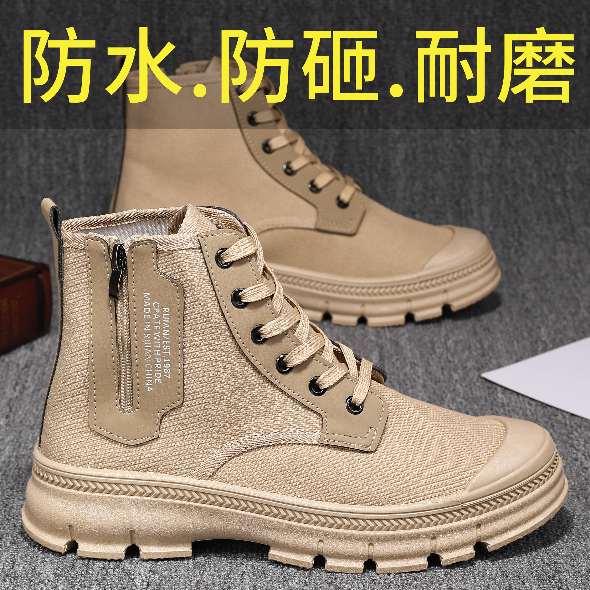 耐磨防滑正品防砸男防水高帮拉链防刺劳保鞋工地工作加绒解放鞋子